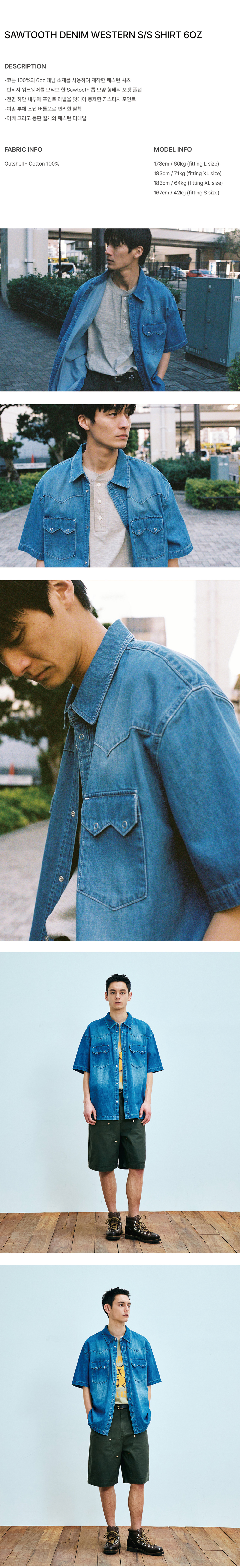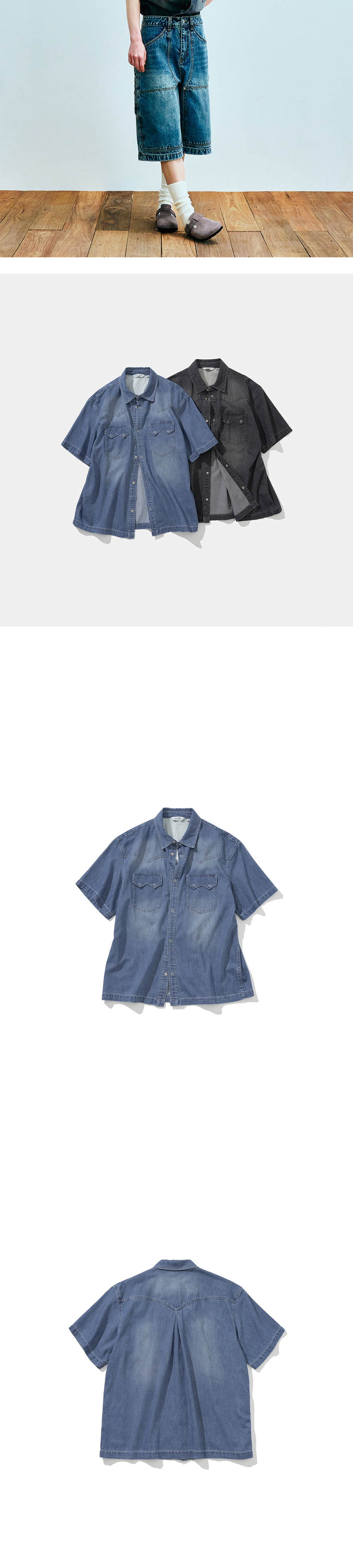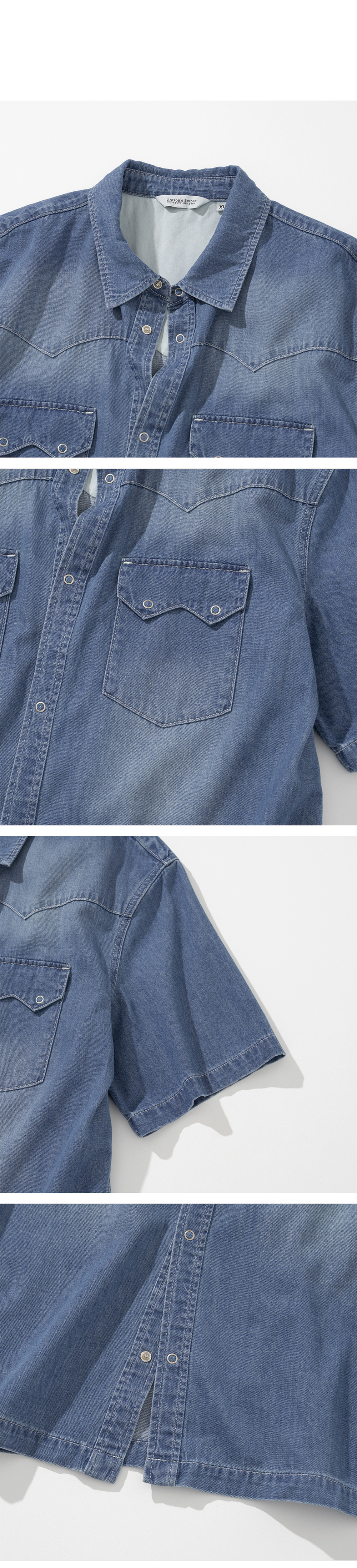 유니폼 브릿지 쏘투스 웨스턴 데님 숏슬리브 셔츠 6oz 라이트 인디고 워시드
