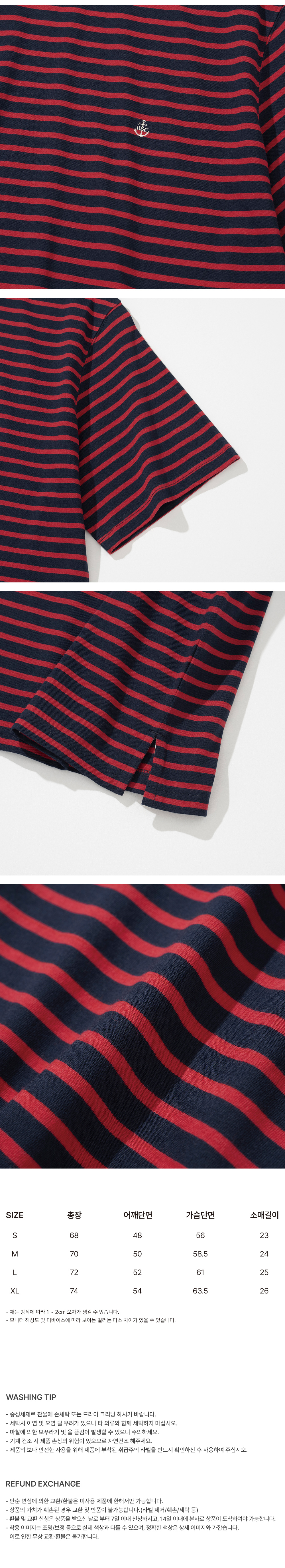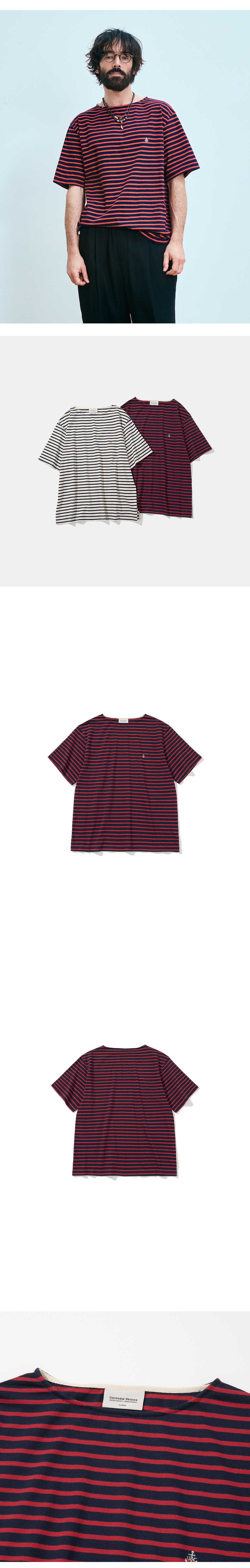 유니폼 브릿지 스트라이프 보트넥 숏슬리브 티 레드