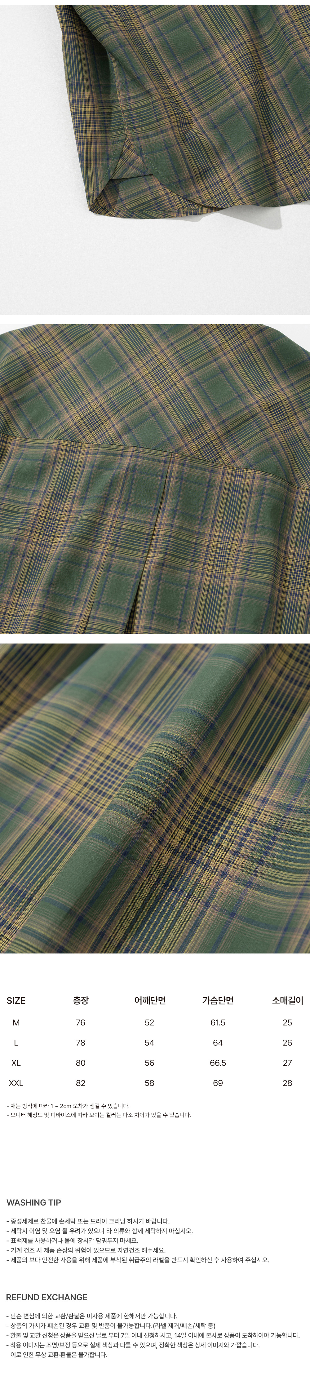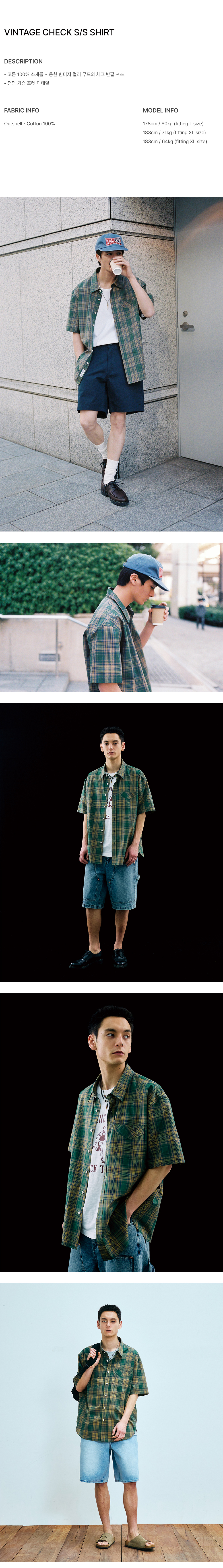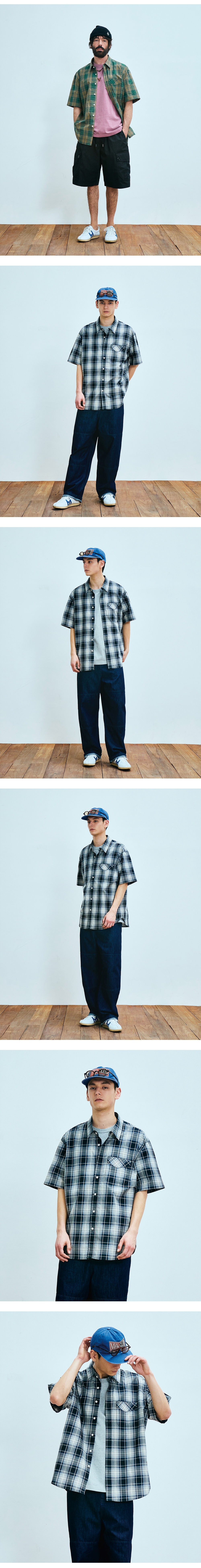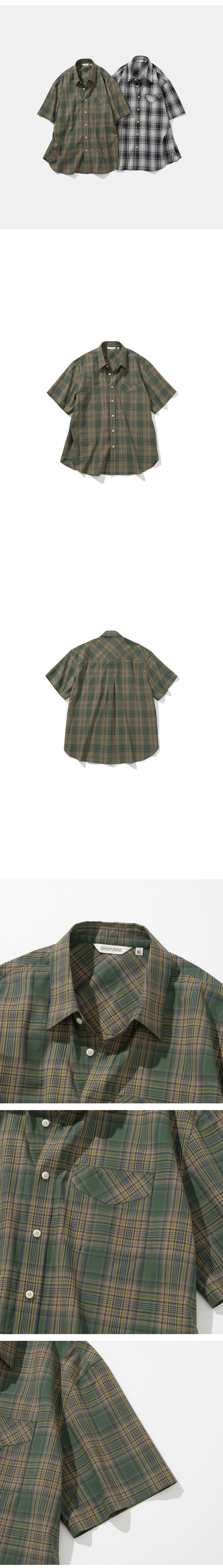 유니폼 브릿지 빈티지 체크 숏슬리브 셔츠 그린