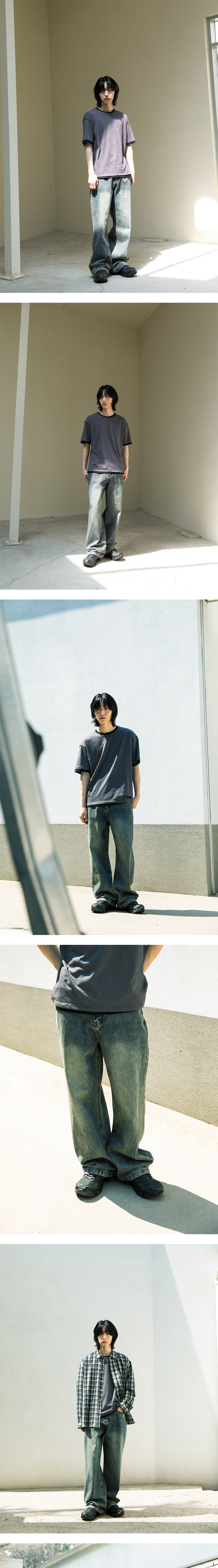 비긴202 와이드 세미 플레어 데님 팬츠 더스티 블루