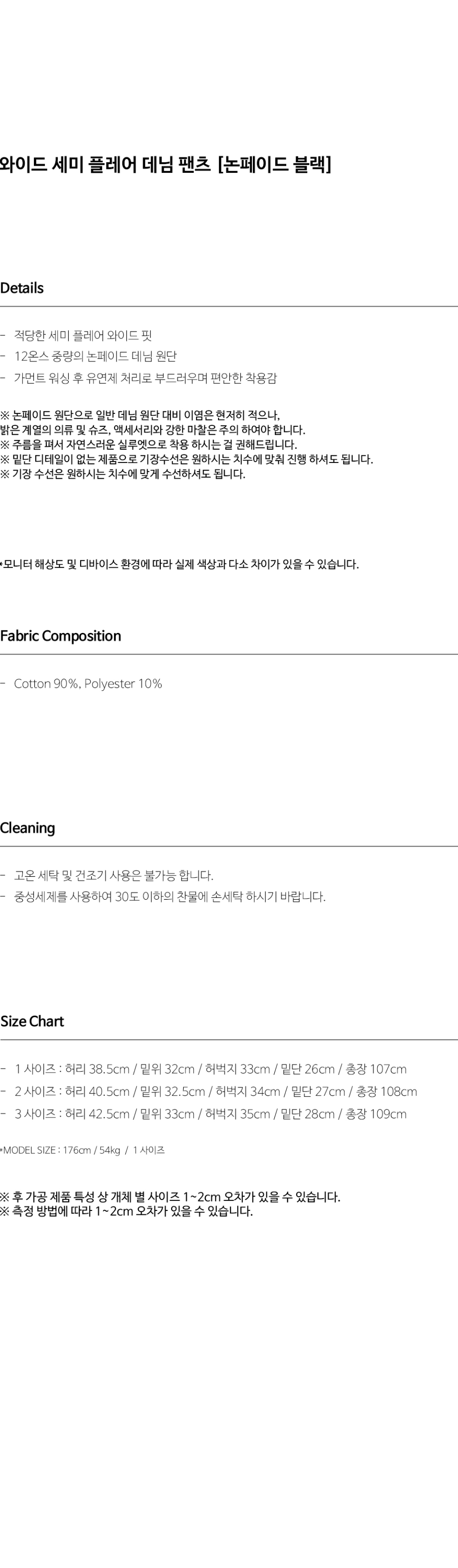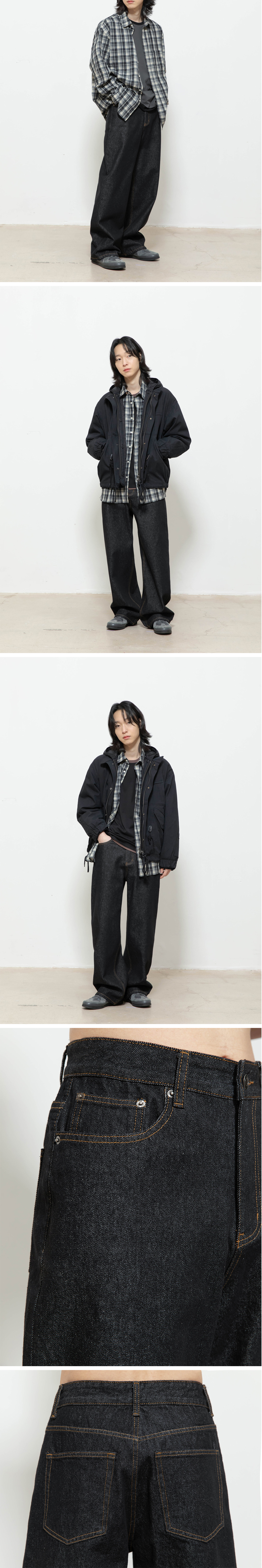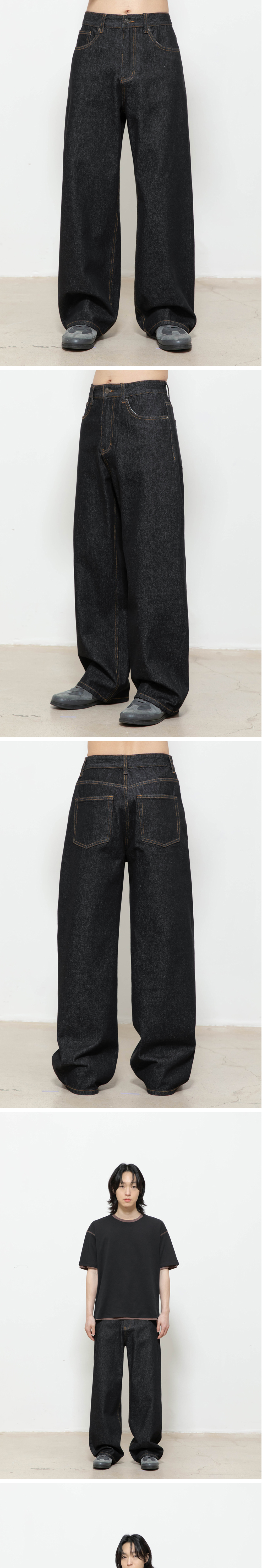 비긴202 와이드 세미 플레어 데님 팬츠 논페이디드 블랙