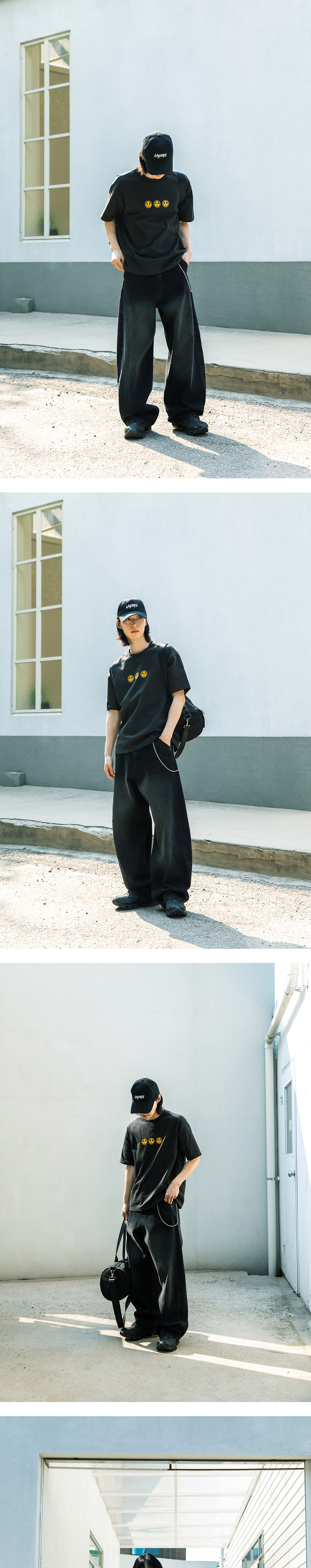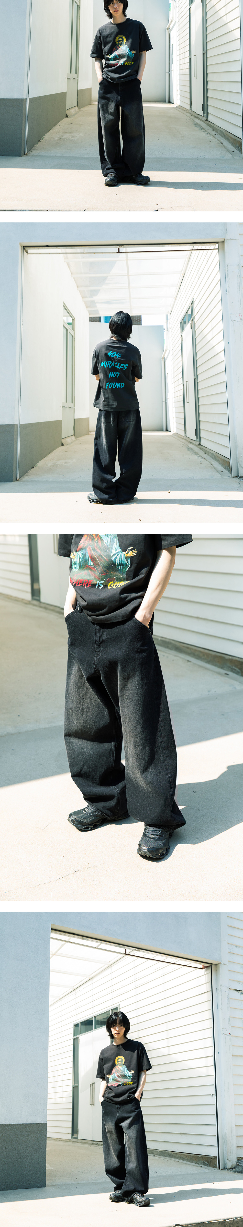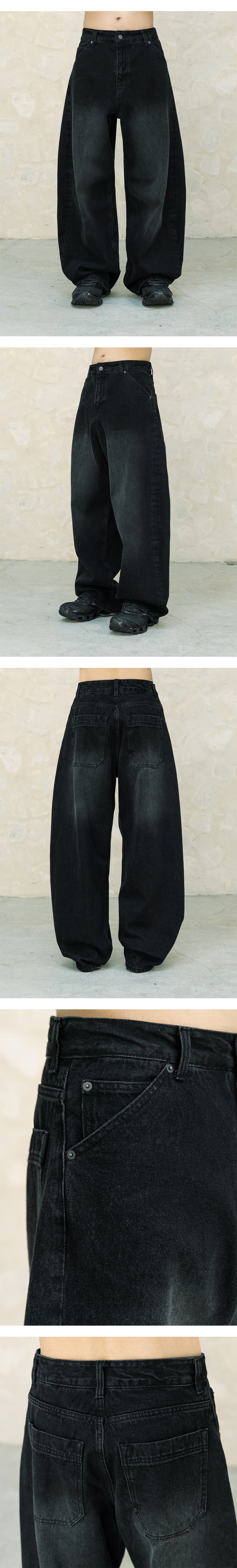 비긴202 아크 커브드 데님 팬츠 워시드 블랙