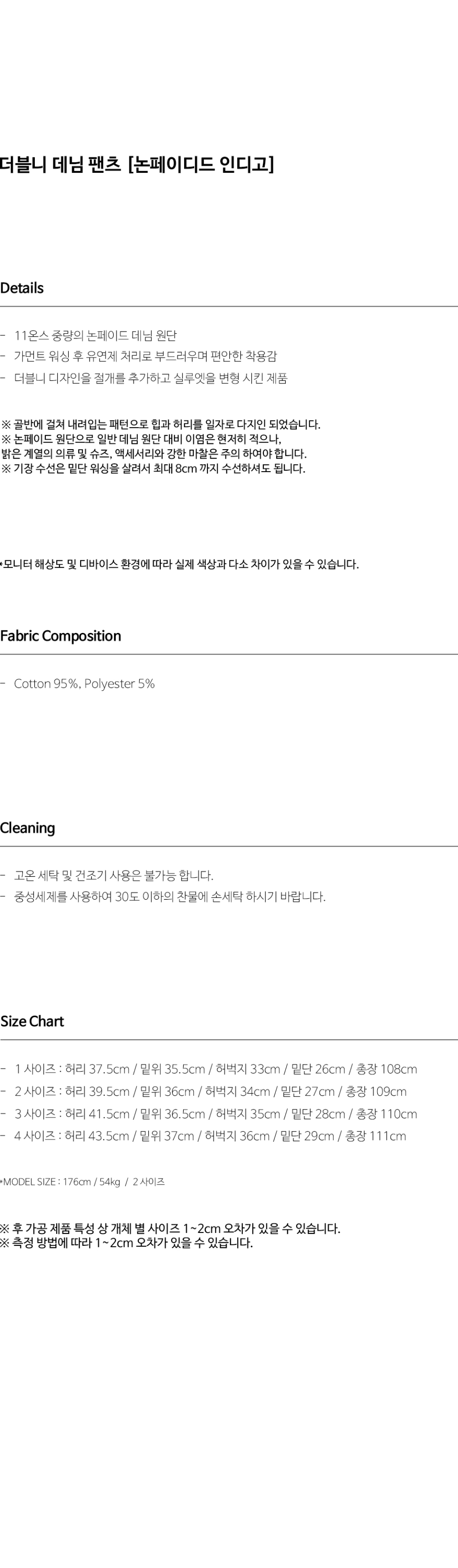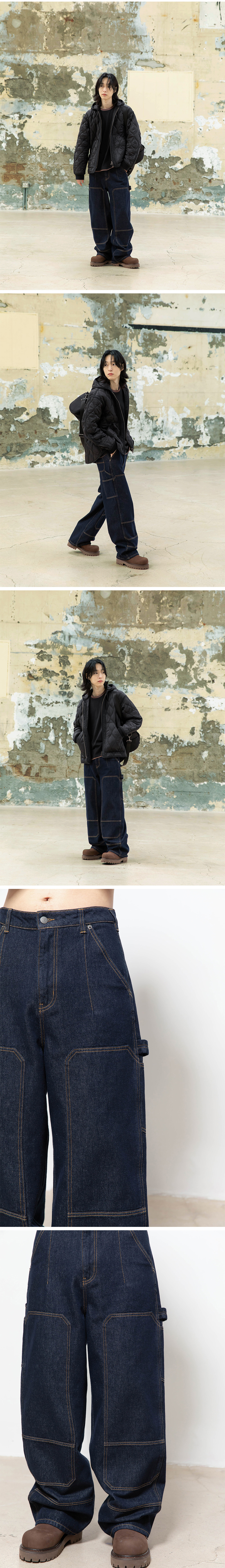 비긴202 더블니 데님 팬츠 논페이디드 인디고