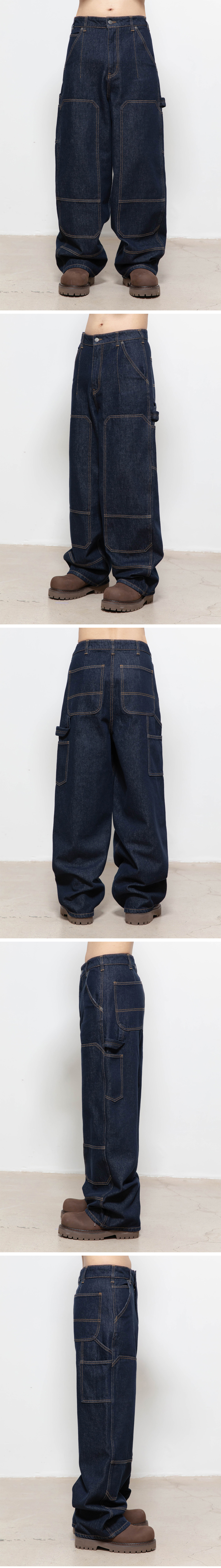 Begin202 Double Knee Denim Pants Non Faded Indigo