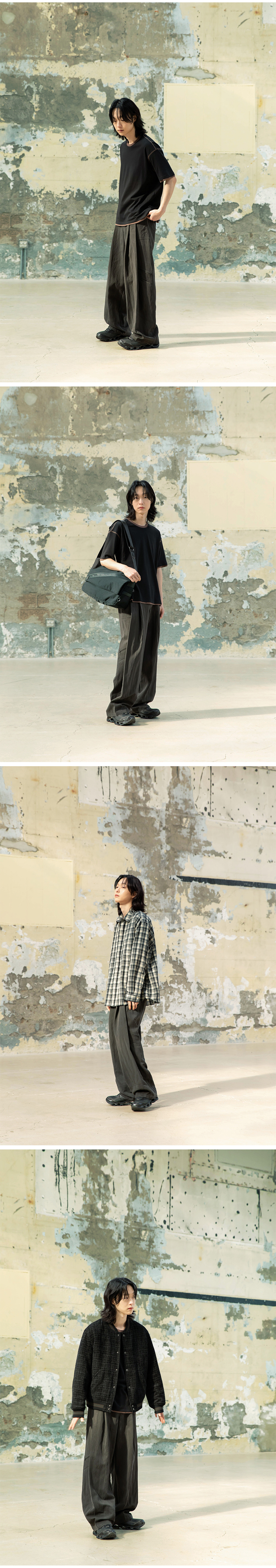 Begin202 Nycoma Twotuck Pants Charcoal Brown