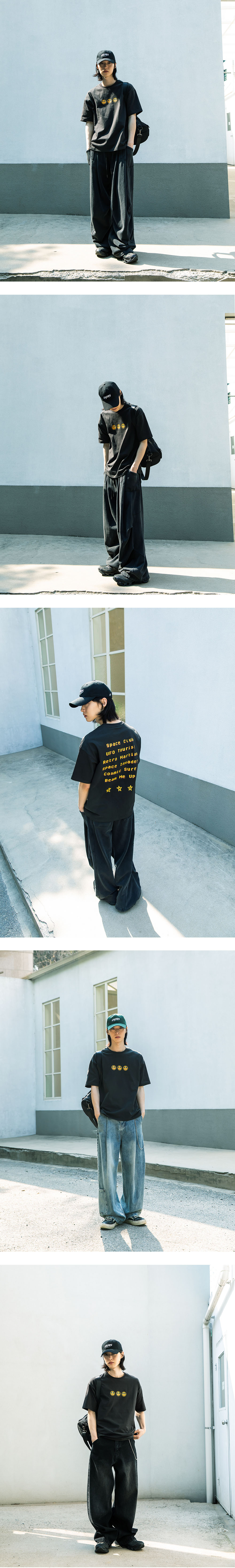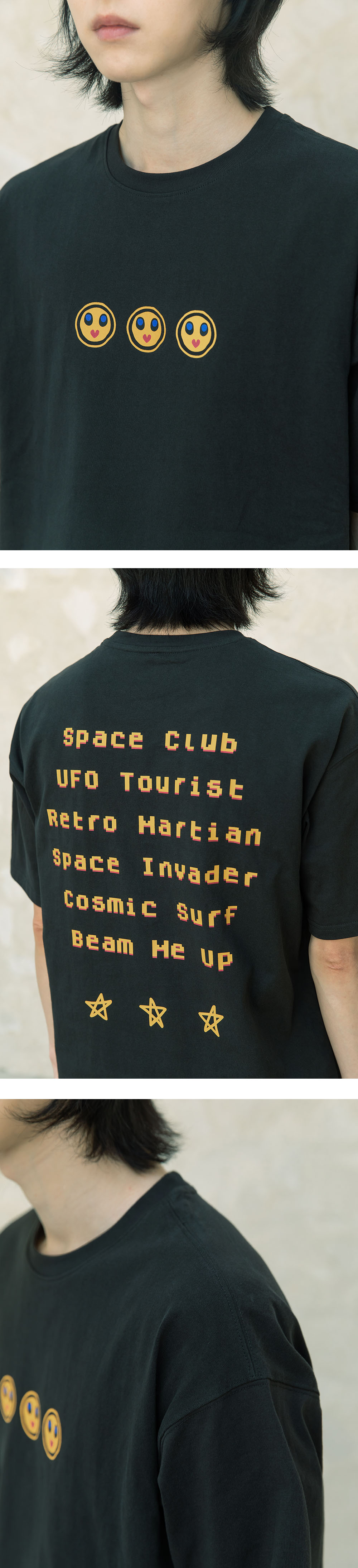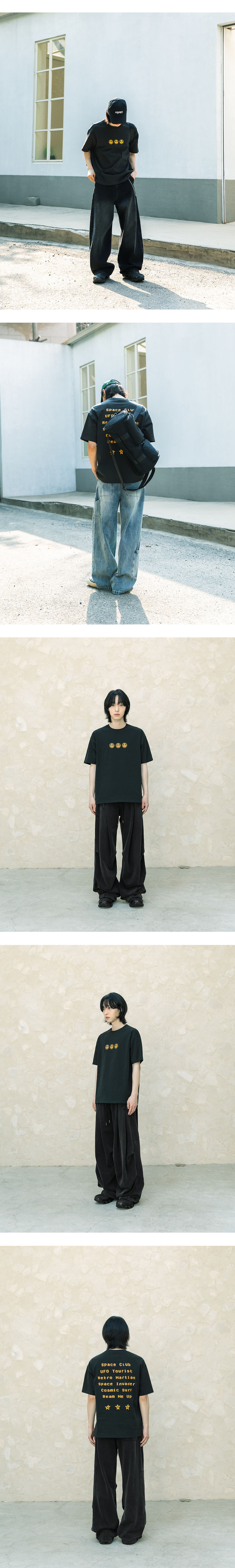 비긴202 지기 외계인 티셔츠 워시드 블랙