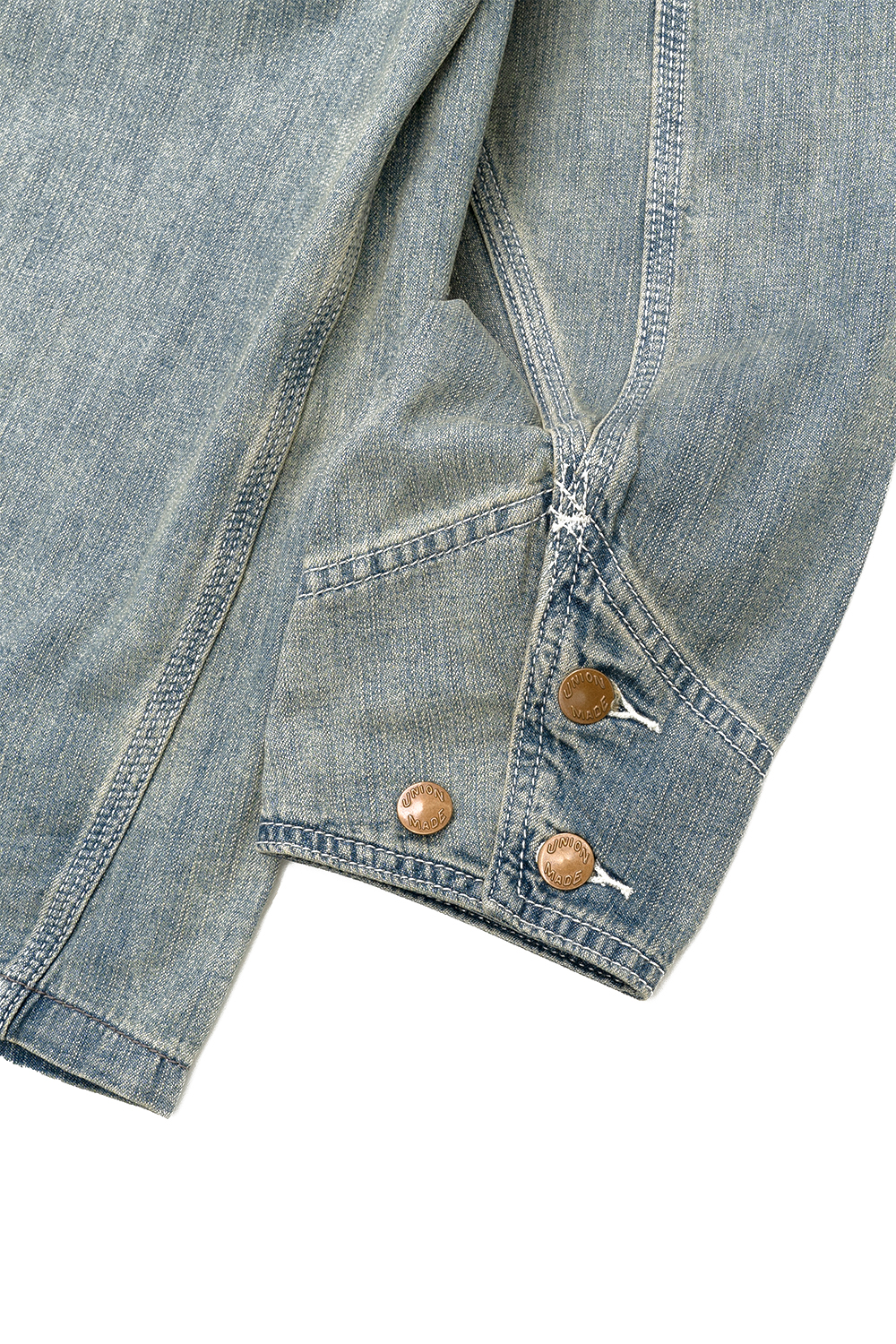 Houston Japan 51491 US Cotton Denim Coverall - Bleach 20년대부터 70년대까지의 레일로드 컬쳐를 대표하는 커버올을 재현한 제품입니다. UNION MADE의 버튼을 채용하였고, US 코튼 데님을 사용하였습니다. 왼쪽 안쪽에 워치 포켓과 3개의 버튼 커프스 등의 워크웨어의 디테일을 모두 재현했습니다. * Cotton 100% * 빛에 의한 제품의 색감 차이가 존재 할 수 있습니다. * Made in China