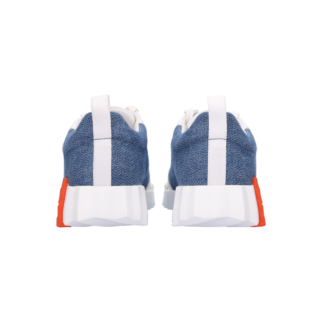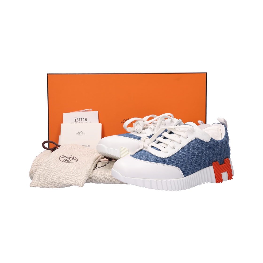 Hermes Bouncing Sneakers Chevron Denim Suede Goatskin & Bleu Clair Blanc 37