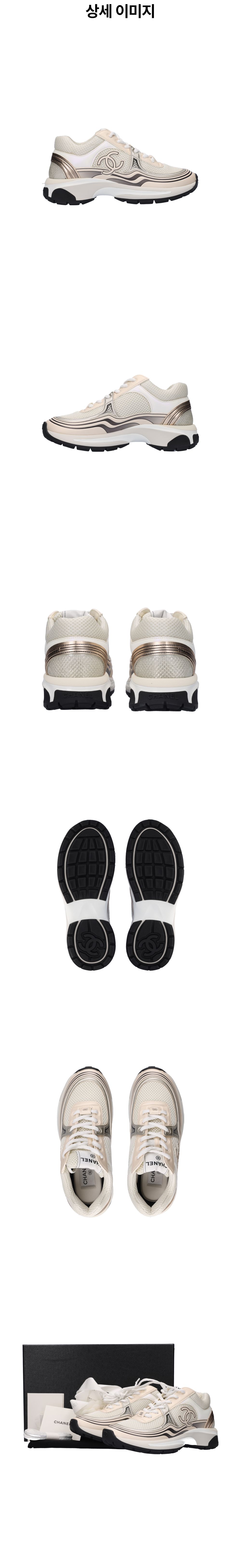 샤넬 G45077B 스니커즈 패브릭 라미네이티드 아이보리 화이트 실버 36