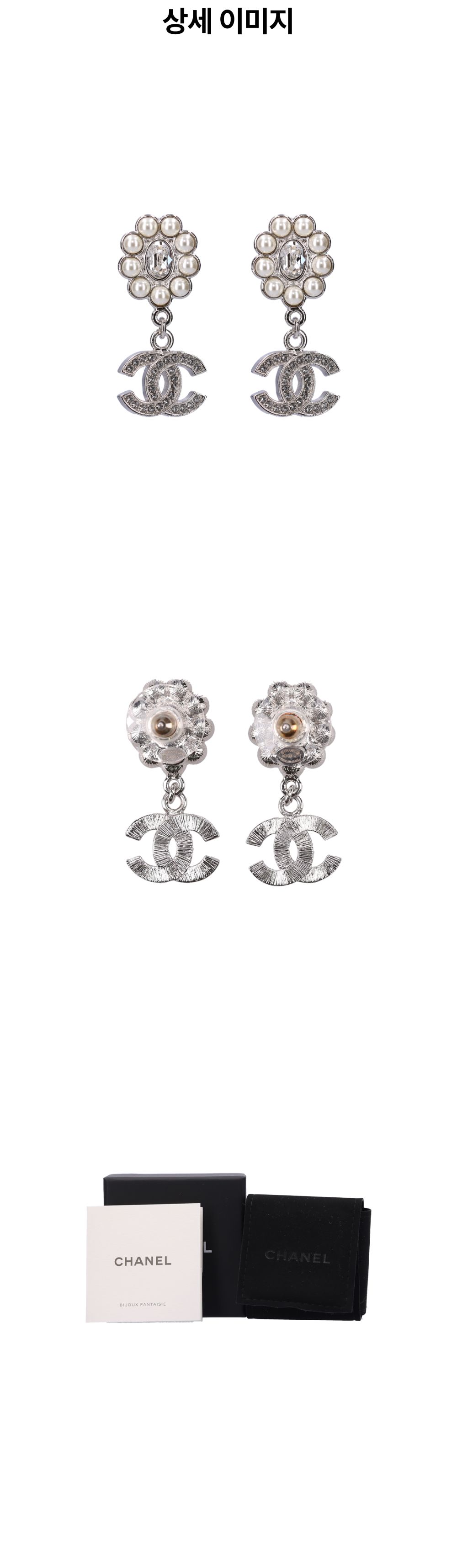 샤넬 ABB141 메탈 크리스탈 펄 드롭 이어링 실버