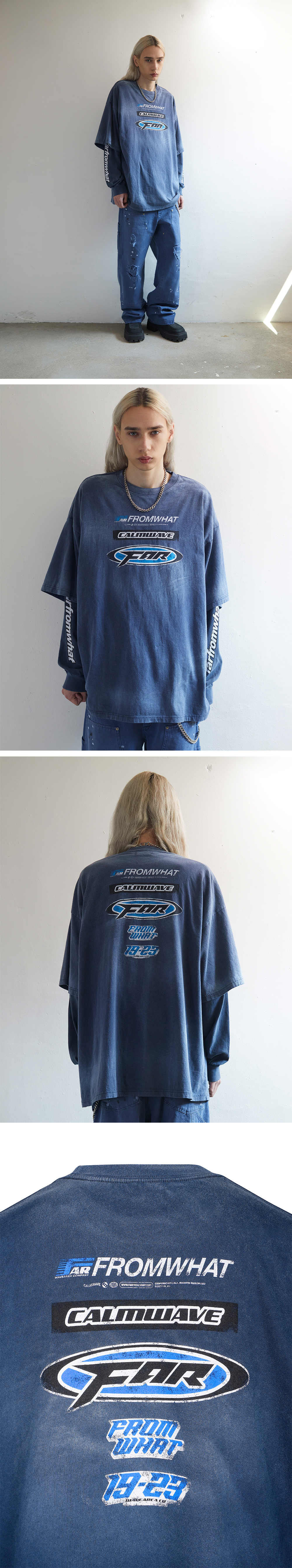 FAR FROM WHAT의 아이덴티티를 담은 그래픽 티셔츠로, 출시 이후 꾸준히 사랑받아온 스테디셀러 제품입니다. 워싱 처리된 바디에 강렬한 블루 컬러 포인트와 레이싱 무드의 로고 그래픽이 조화를 이루며, 빈티지하면서도 트렌디한 분위기를 완성합니다. 여유로운 오버사이즈 핏으로 다양한 스타일링에 활용하기 좋습니다.