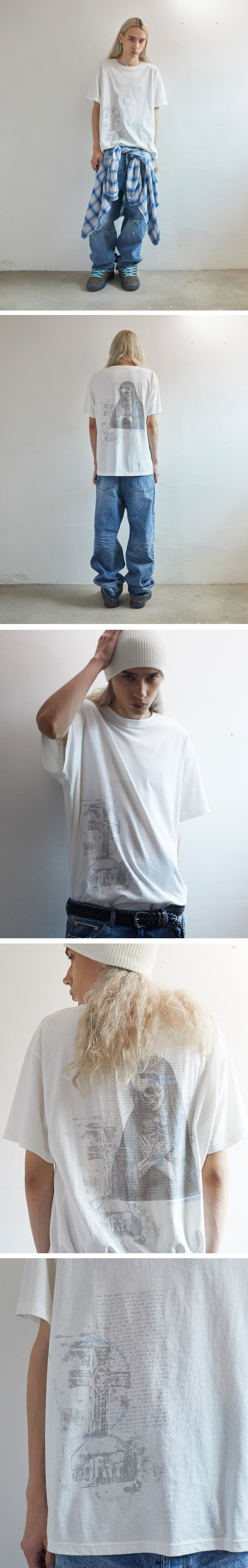 백 라인에 스컬 수녀 이미지를 활용한 그래픽이 인상적인 아트워크 티셔츠입니다. 몽환적이고 빈티지한 무드로 해석된 아트 프린트가 돋보이며, 자연스럽게 바랜 듯한 표현으로 강렬하면서도 감각적인 스타일을 연출합니다. 여유로운 오버사이즈 실루엣으로 다양한 스트릿 스타일에 매치하기 좋습니다.