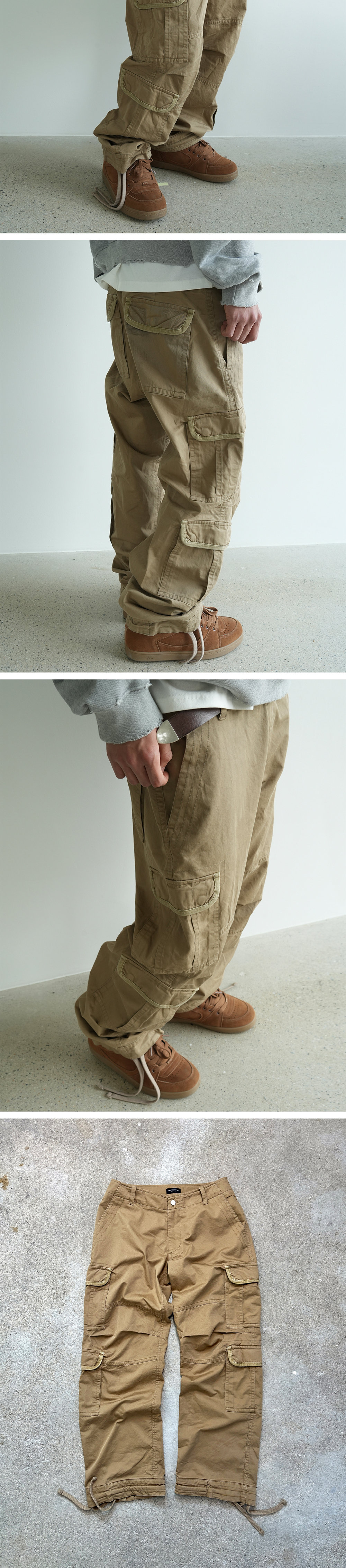 4포켓 디테일이 적용된 루즈핏 카고 팬츠입니다. 사이드 플랩 포켓과 무릎 절개로 입체적인 실루엣을 완성했으며, 밑단에는 조임끈과 스트랩 디테일을 추가해 다양한 연출이 가능합니다. 탄탄한 코튼 원단을 사용해 자연스러운 구김과 빈티지한 무드를 더했습니다.