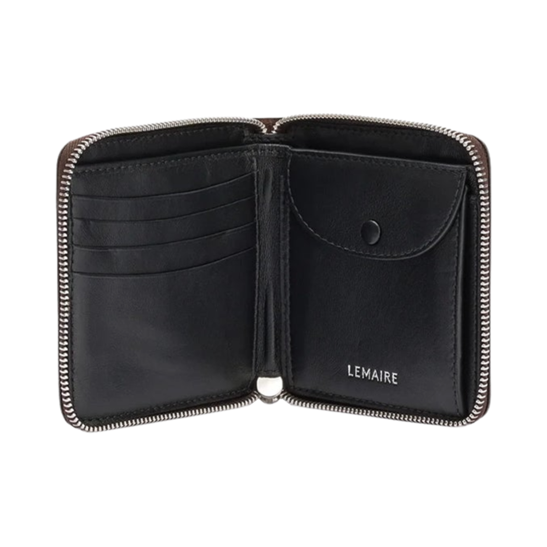 Lemaire Patina Leather Zip Compact Bi-Fold Wallet Ristretto