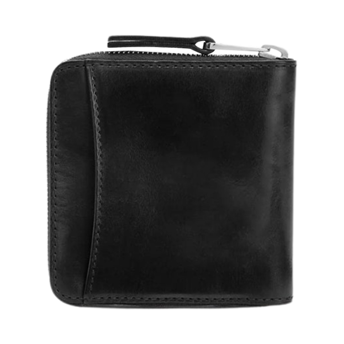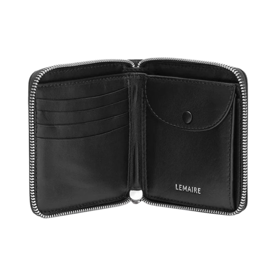 Lemaire Patina Leather Zip Compact Bi-Fold Wallet Black