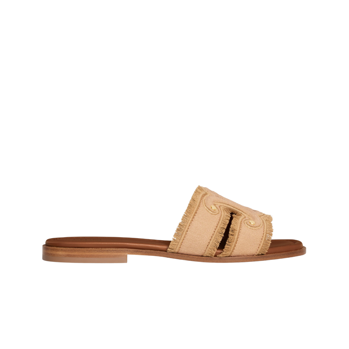 (W) Celine Marina Fringed Mule in Cotton Light Caramel