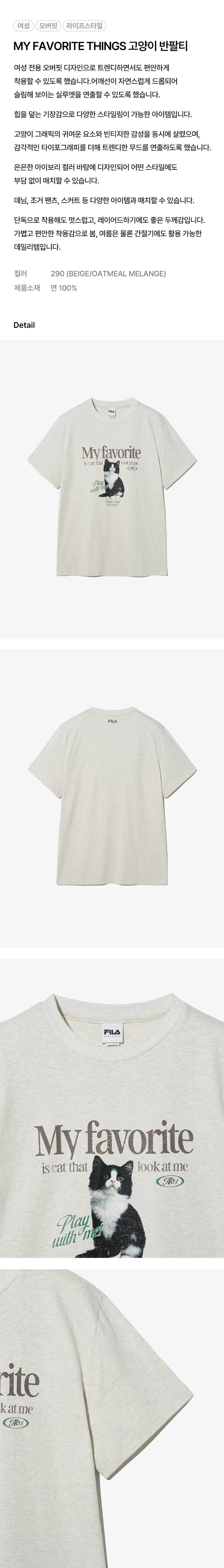 휠라 [MY 티셔츠] 오버핏 고양이 티셔츠 오트밀