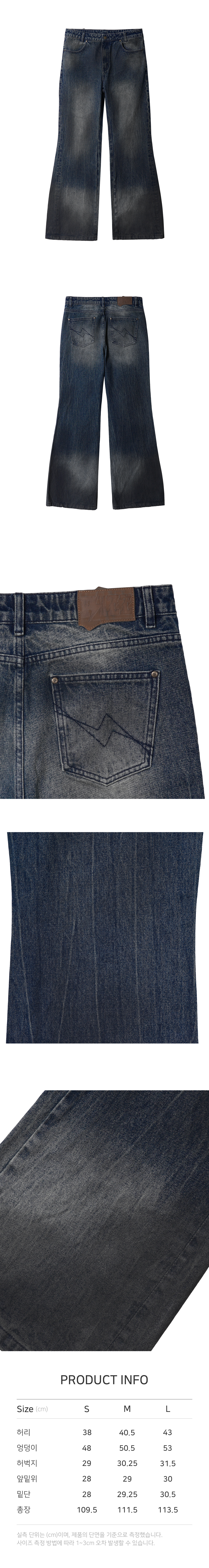 멜로우 더티 워시드 플레어 데님 팬츠 블루