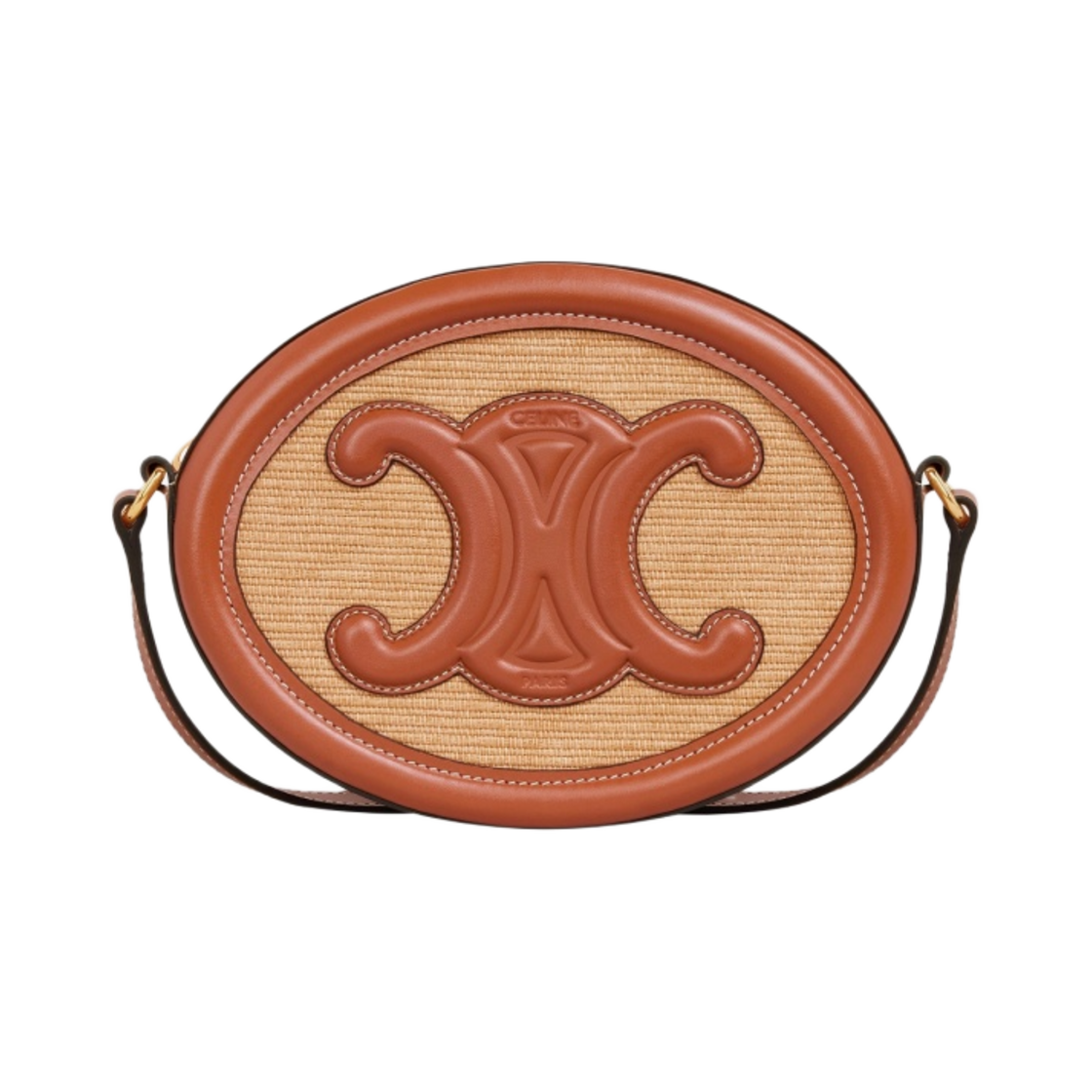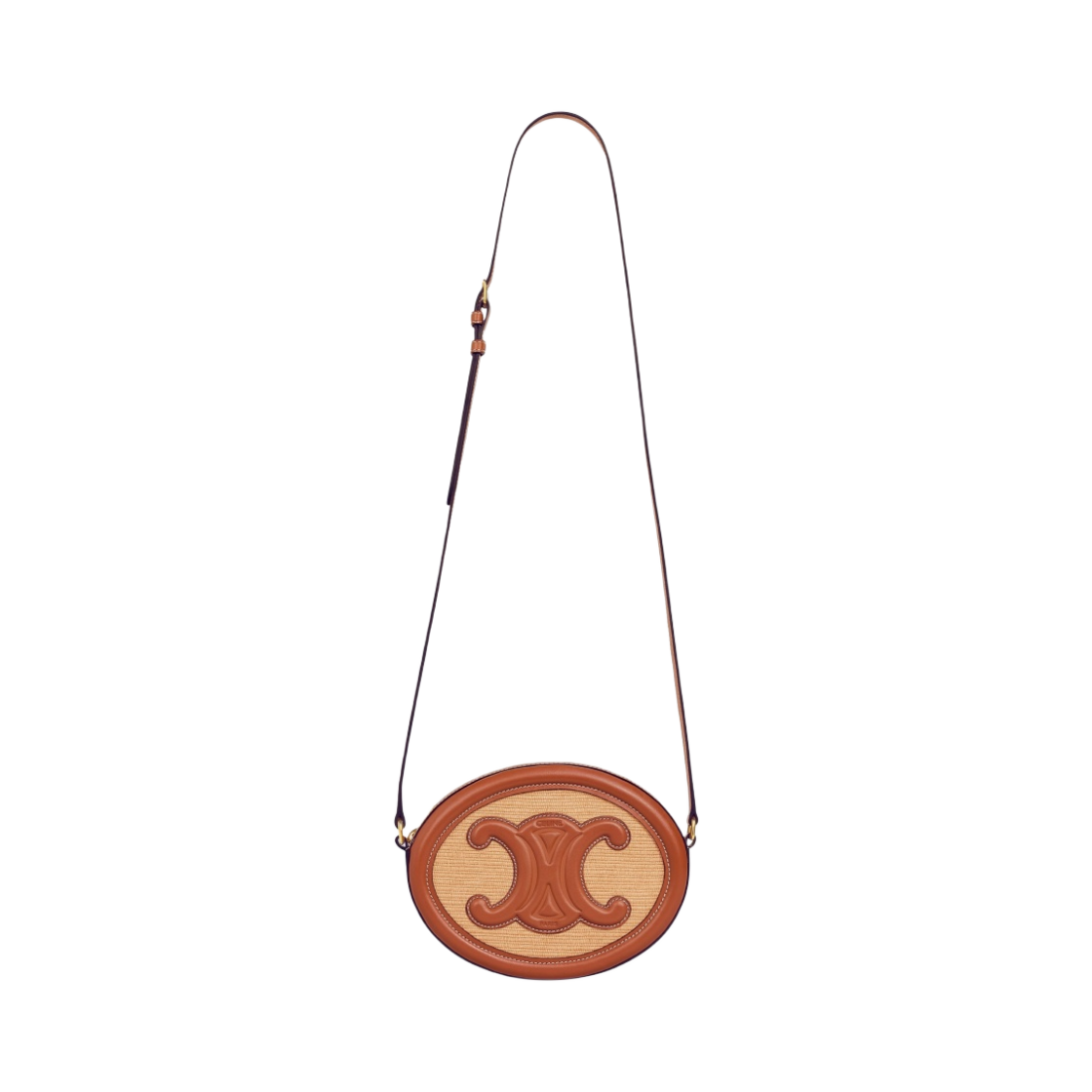 셀린느 텍스타일 & 카프스킨 오발 백 레더 트리옹프 내츄럴 탄