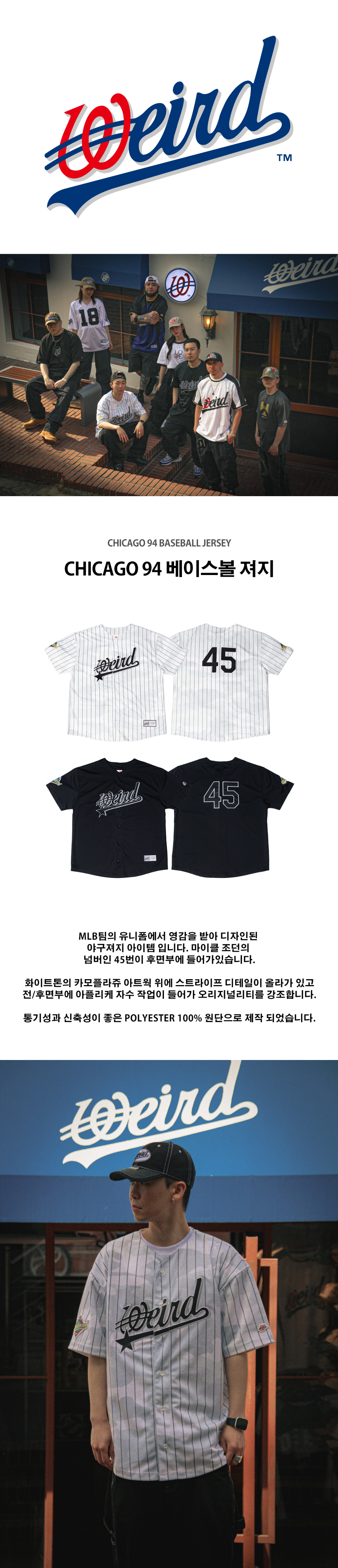위얼드월드 시카고 94 베이스볼 져지 화이트