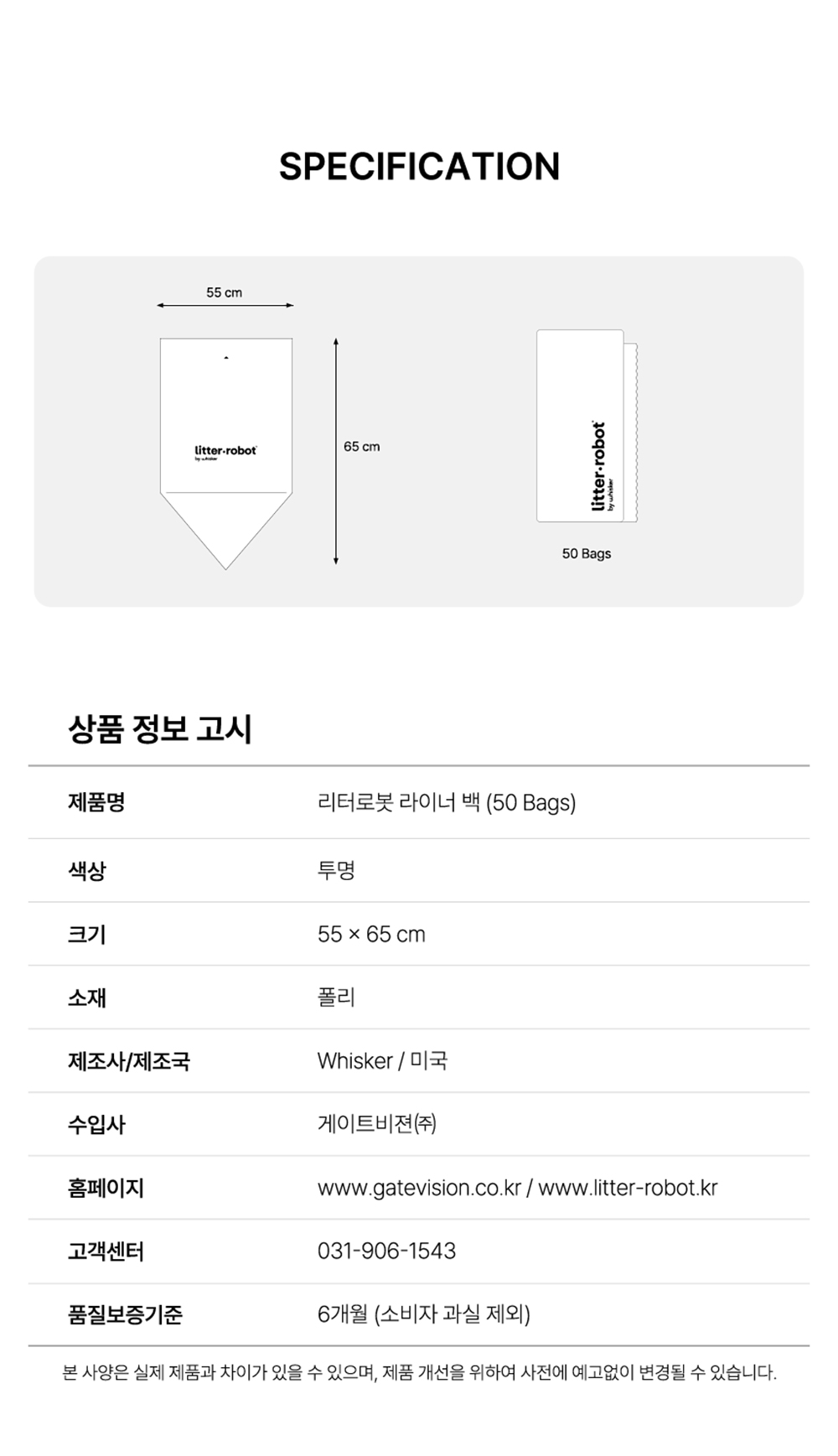 리터로봇 4 DRAWER LINERS 라이너 백 전용 배변 봉투 50봉
