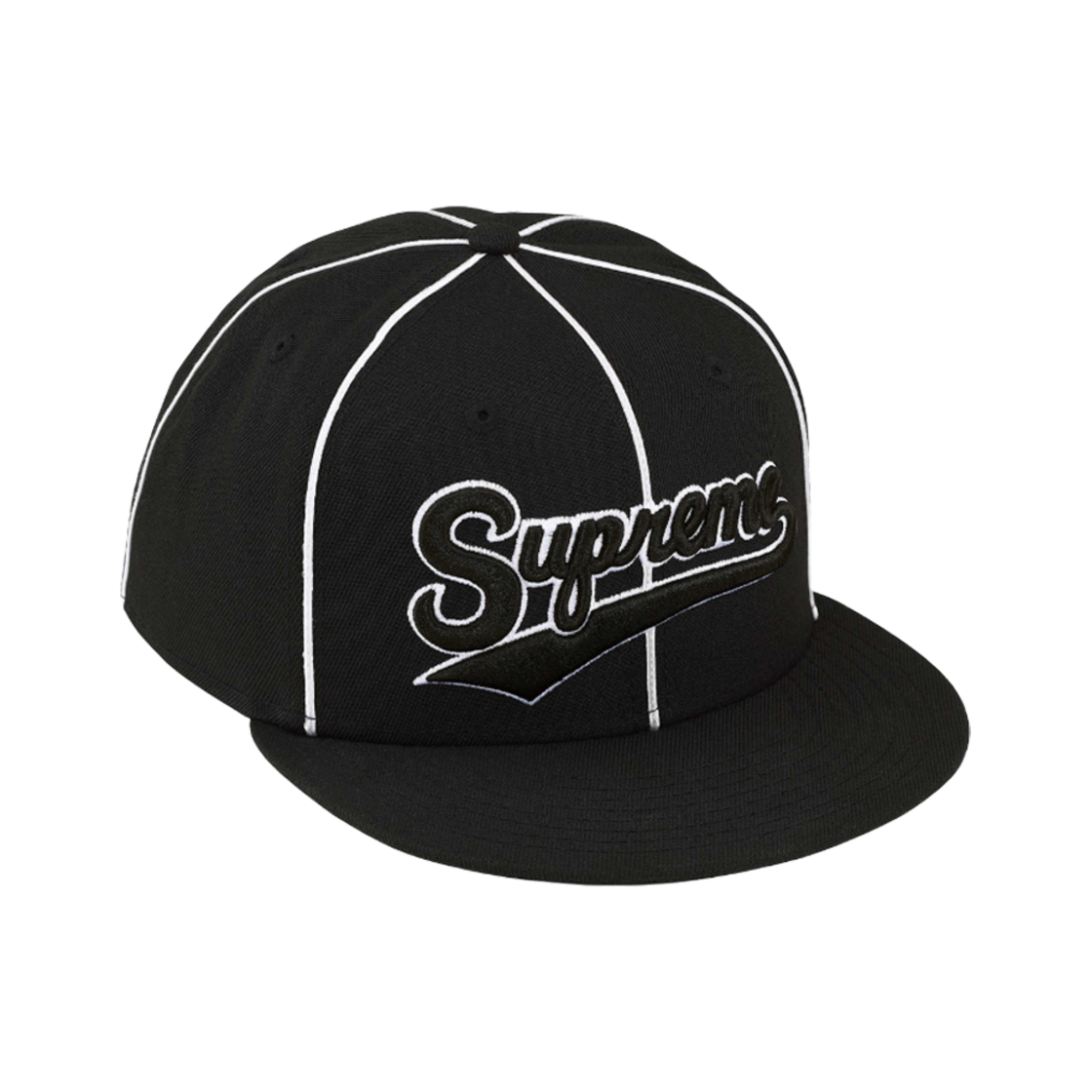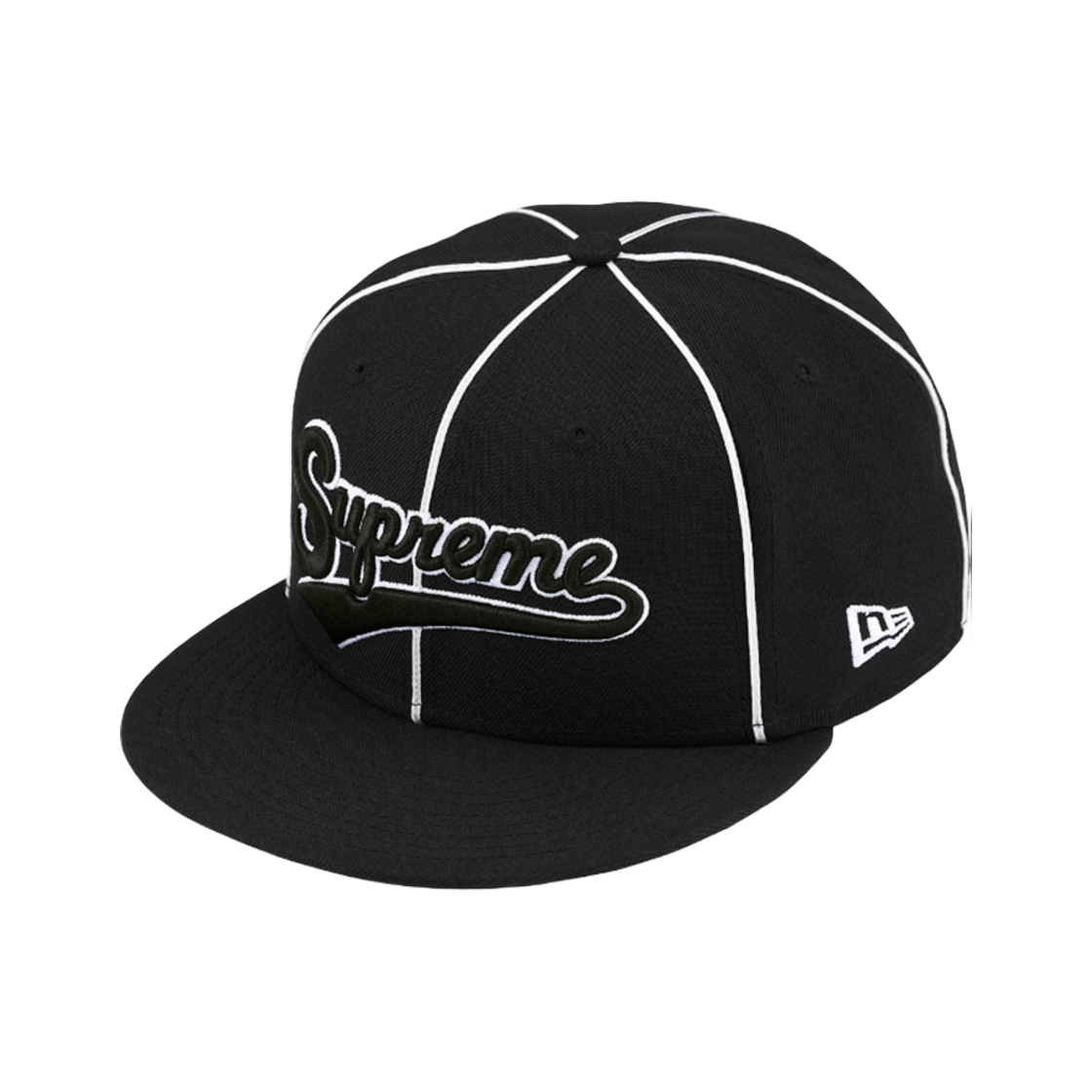 슈프림 파이핑 스크립트 로고 뉴에라 블랙 - 25SS
