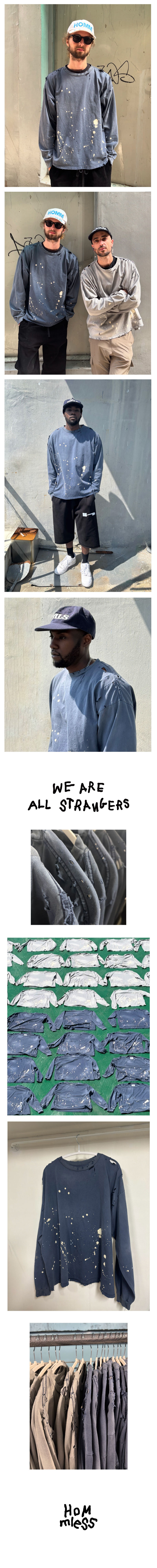 홈리스 페인티드 빈티지 롱슬리브 티셔츠 워시드 네이비