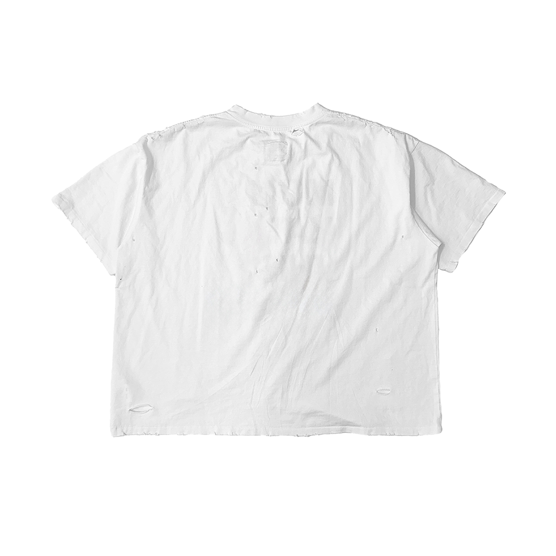 *색상은 제품컷과 가장 유사하며 해상도에 따라 차이가 있을 수 있습니다. • Unisex • 16s 100% cotton • Oversized fit • Vintage dirty washed • Areas of hand distressing at neck, hems, & body • Printed graphic at front • 80's vintage single stitch