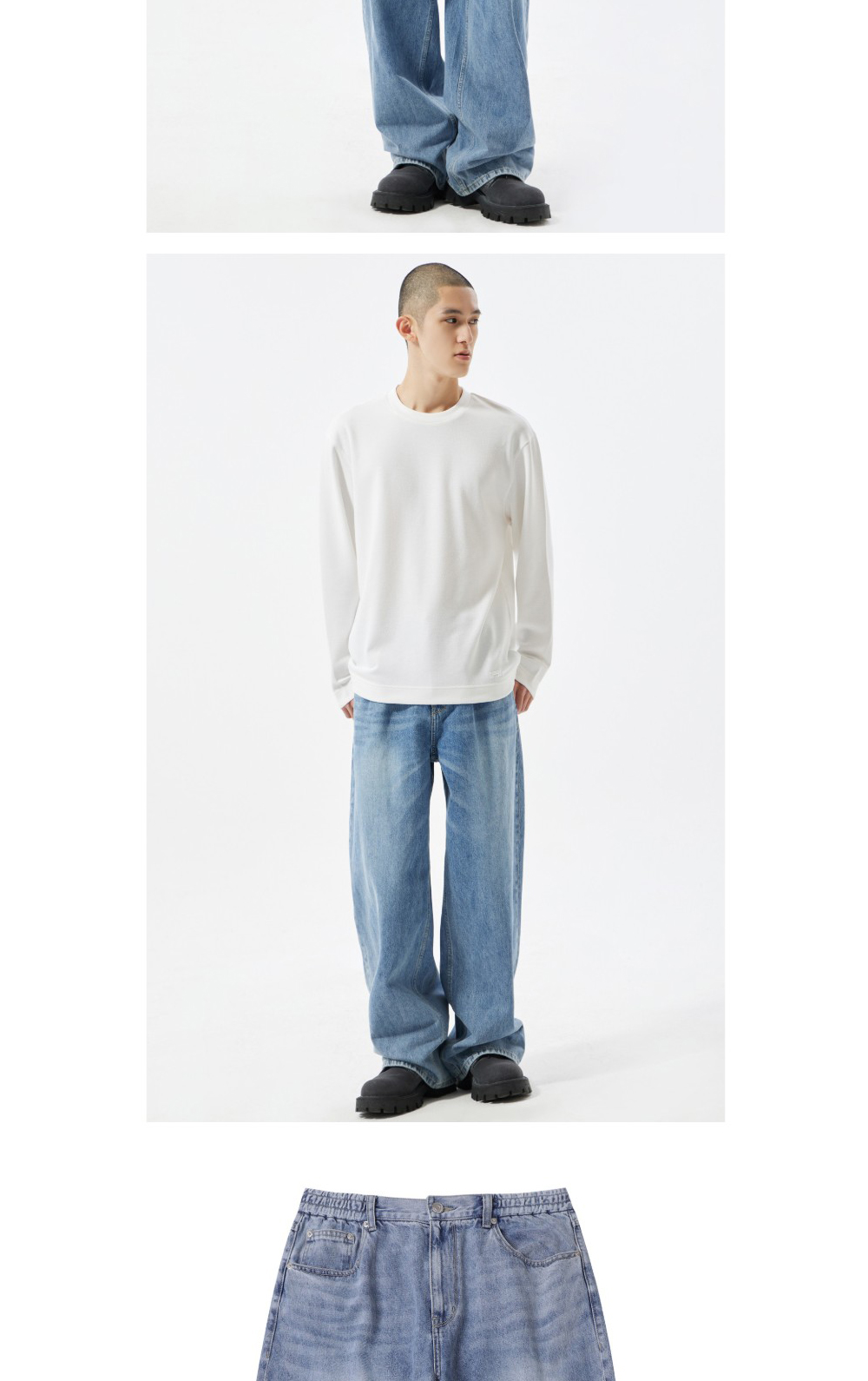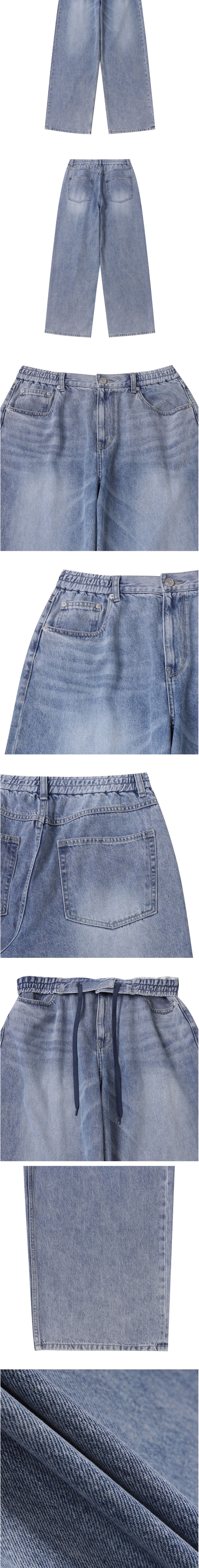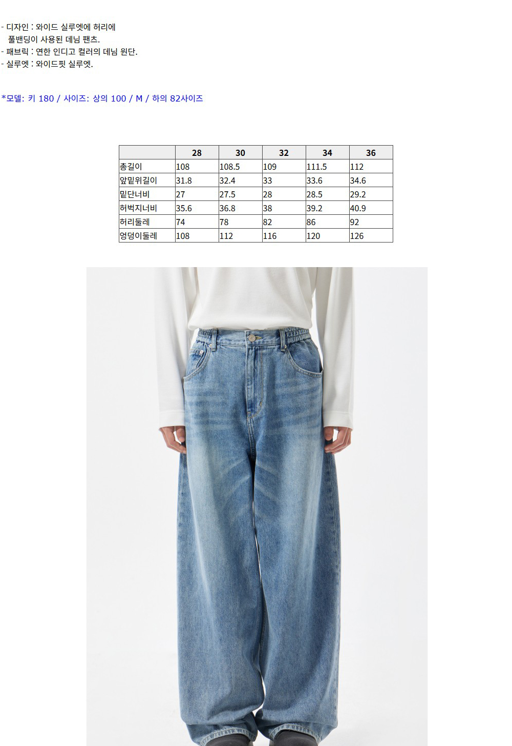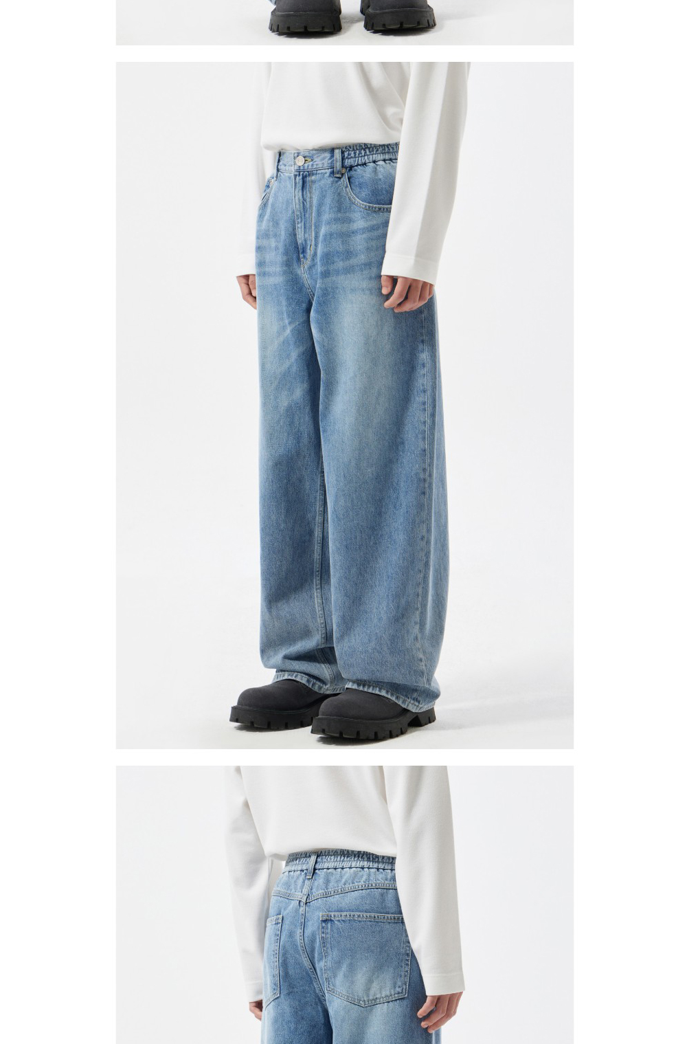 커스텀멜로우 와이드핏 밴딩 진 블루