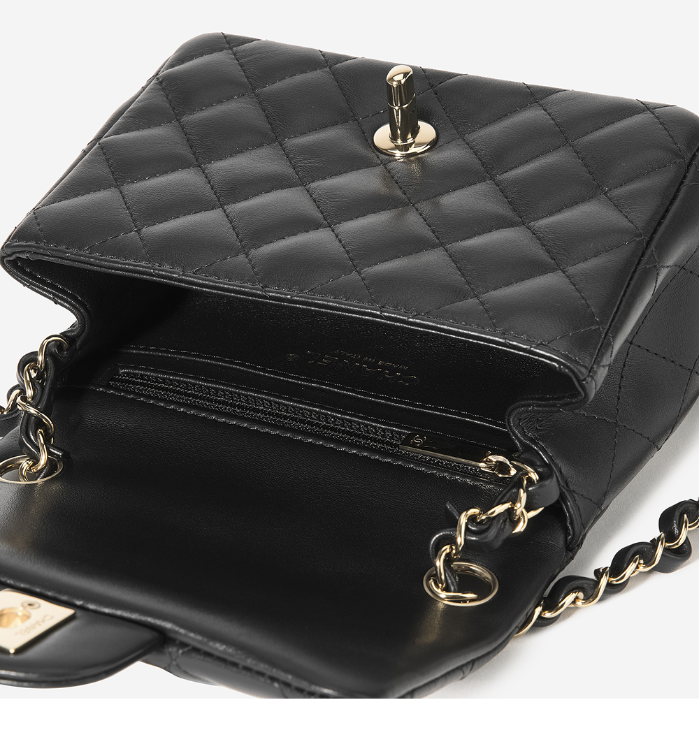 샤넬 미니 플랩백 램스킨 & 골드 메탈 블랙