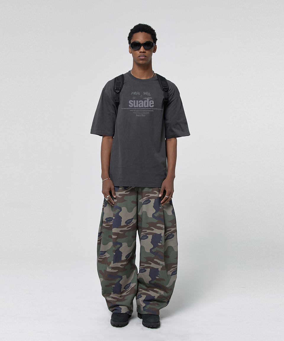 스웨이드 믹스드 로고 티 피그먼트 블랙