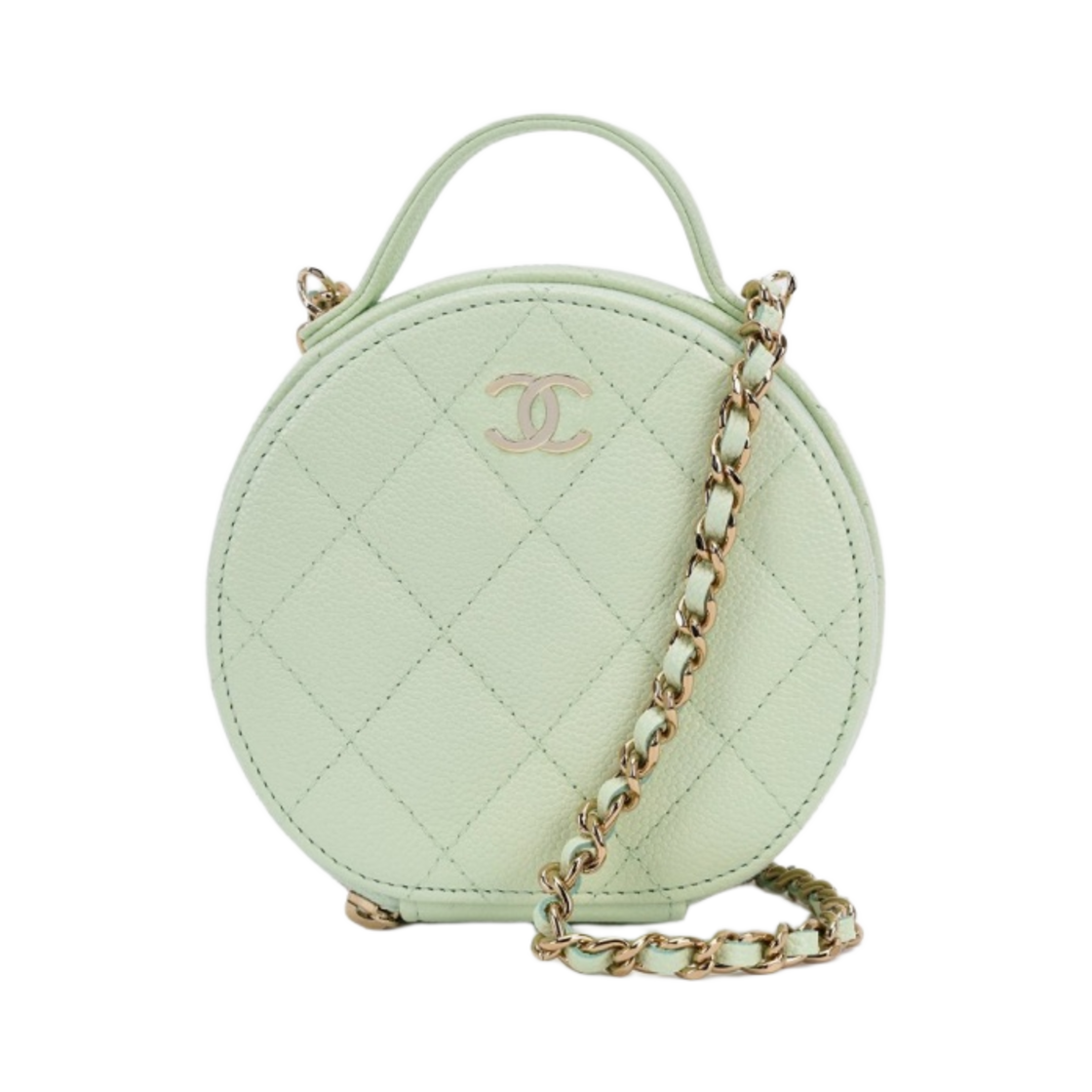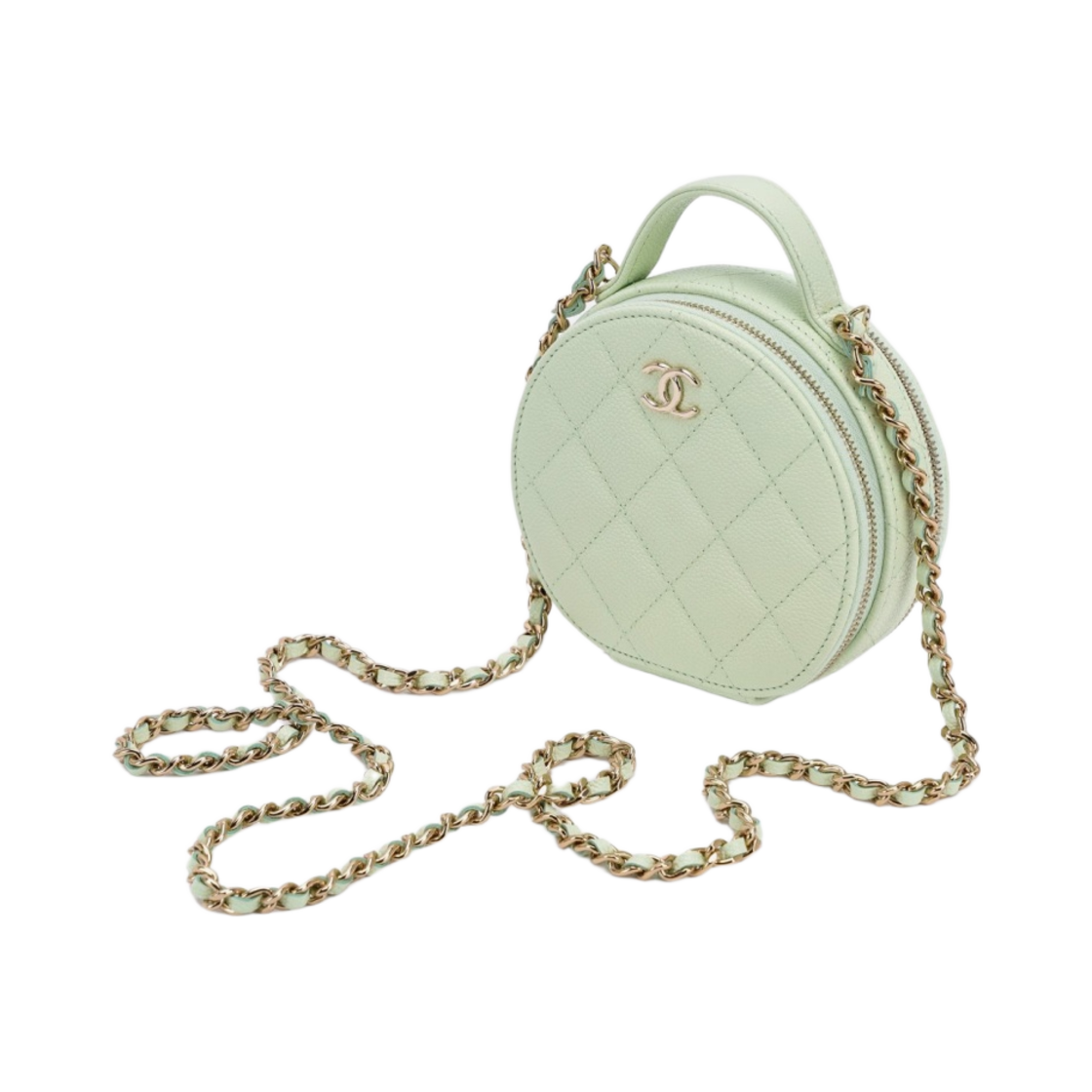 Chanel Small Vanity With Chain Grained Calfskin & Gold Light Green