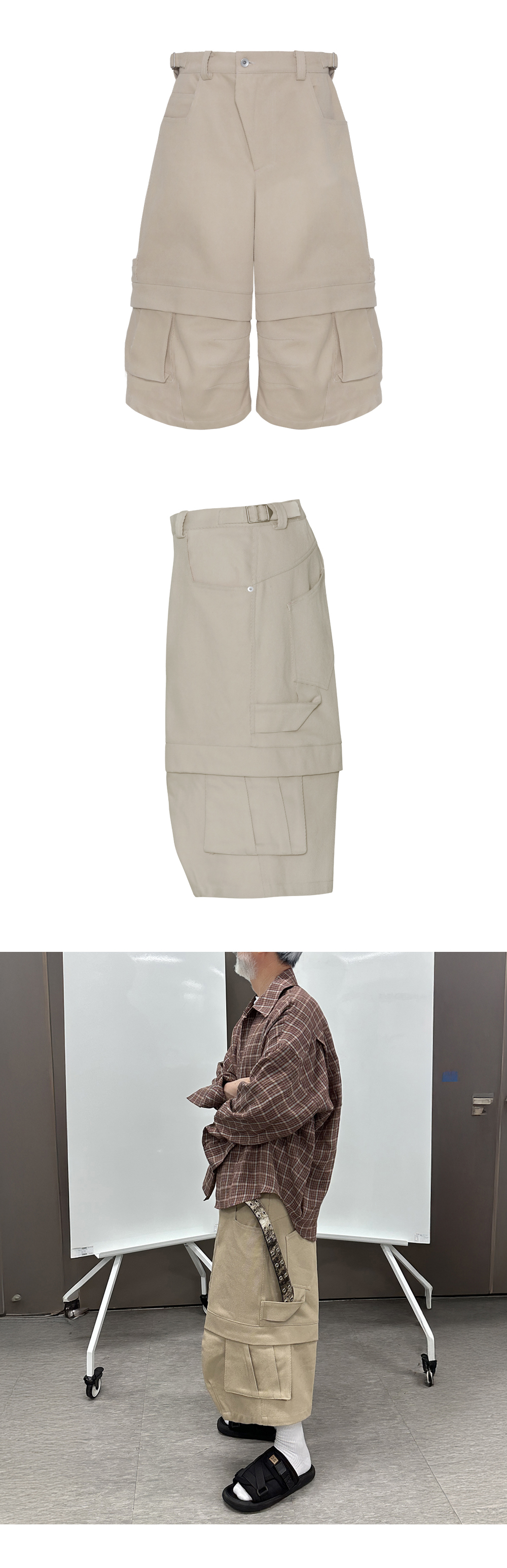 하드 트윌 코튼 100% 소재로 제작한 버뮤다 팬츠. 타이탄 배기 팬츠의 볼드한 실루엣을 계승해, 다트 디테일로 구조적인 볼륨감을 살리고 시즌에 맞게 재구성했습니다.