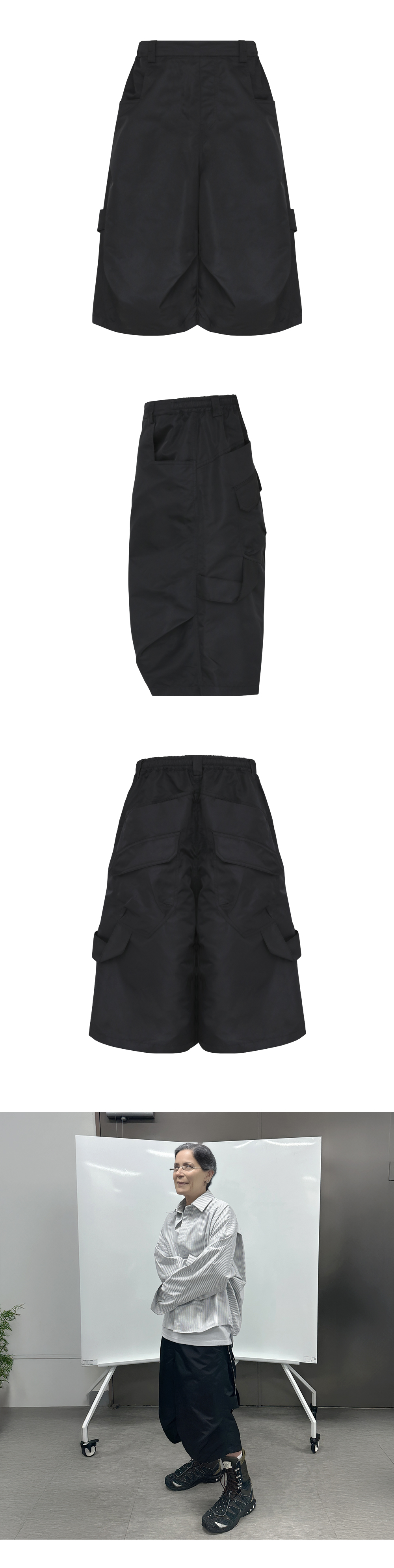 가벼운 나일론 소재로 제작된 버뮤다 팬츠. 247 올데이 배기 팬츠의 편안한 착용감을 유지하며, 유연한 실루엣으로 데일리 웨어로 적합합니다.
