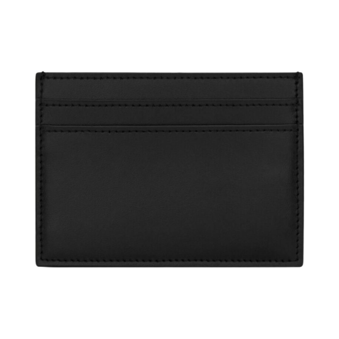 Saint Laurent Tiny Silver Monogram Card Case in Matte Leather Black
