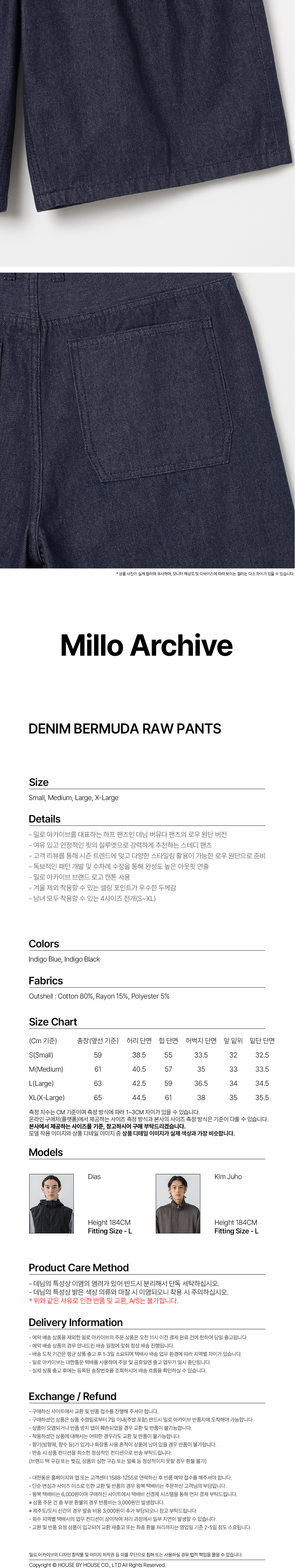 밀로 아카이브 데님 버뮤다 로우 팬츠 인디고 블루