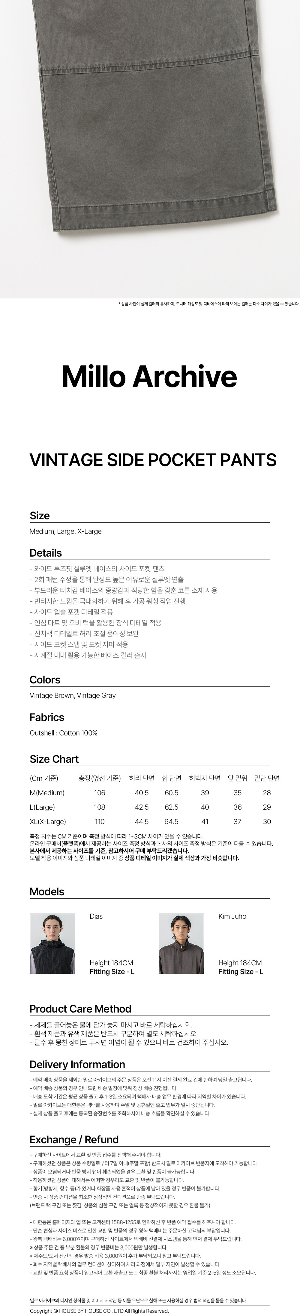 밀로 아카이브 빈티지 사이드 포켓 팬츠 빈티지 그레이