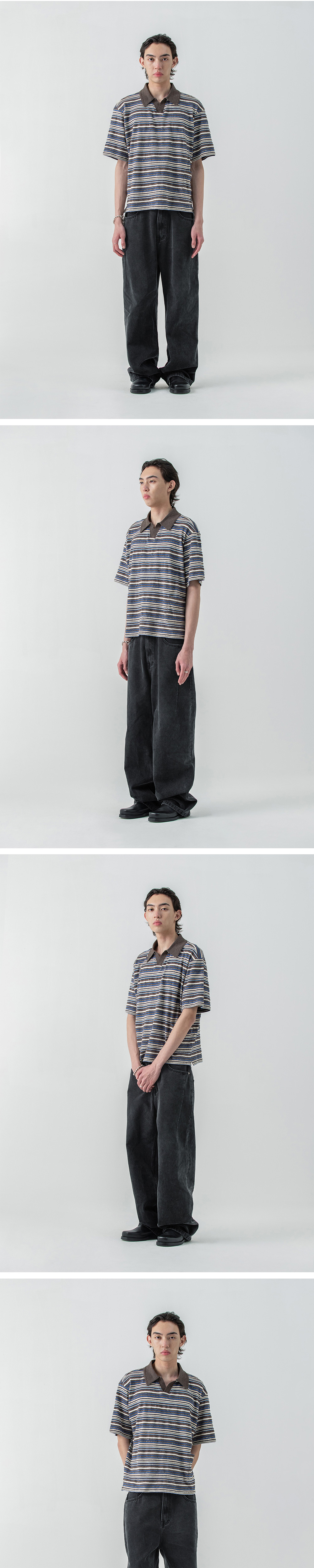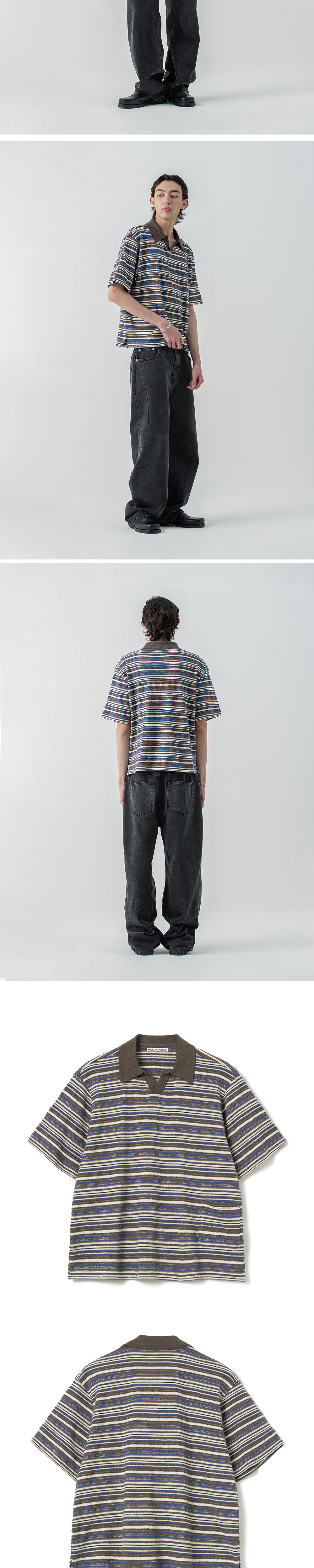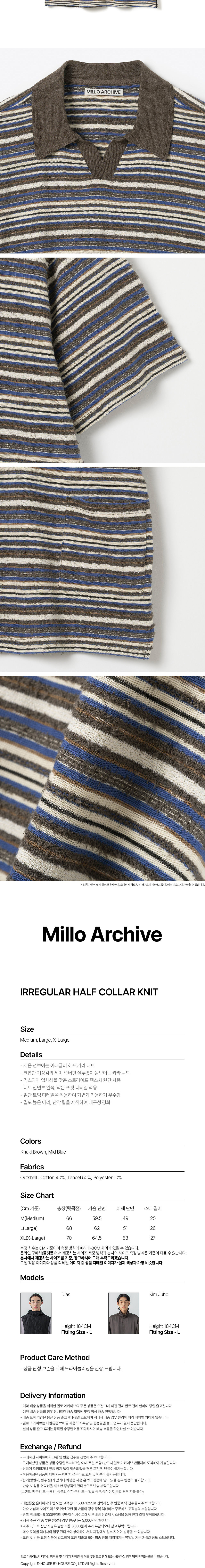 밀로 아카이브 이레귤러 하프 카라 니트 미드 블루
