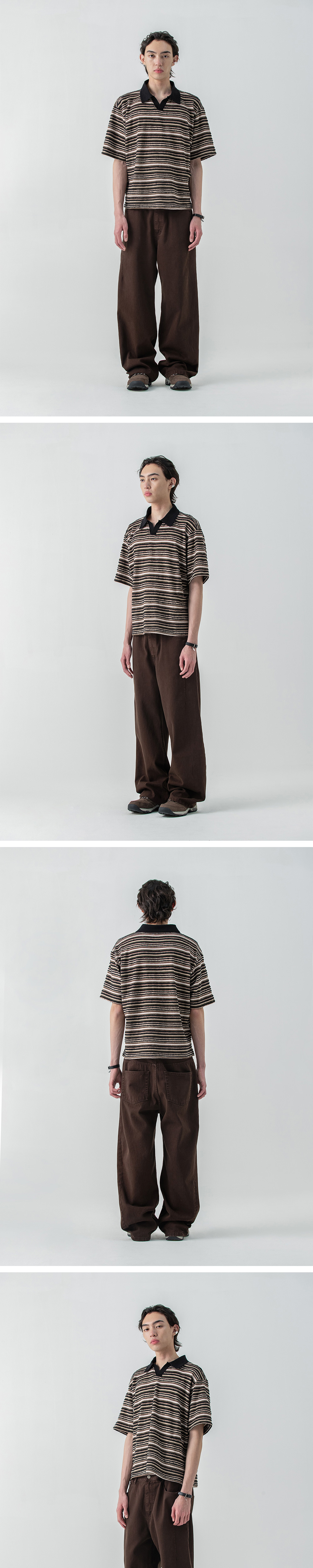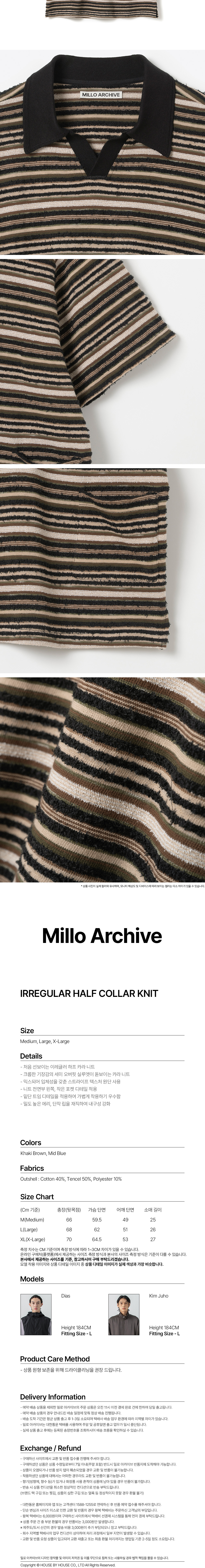 밀로 아카이브 이레귤러 하프 카라 니트 카키 브라운