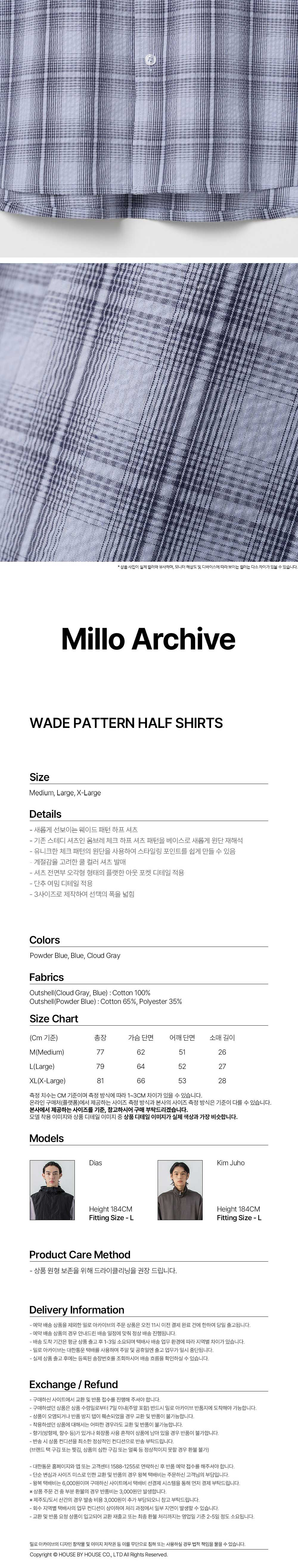 밀로 아카이브 웨이드 패턴 하프 셔츠 파우더 블루