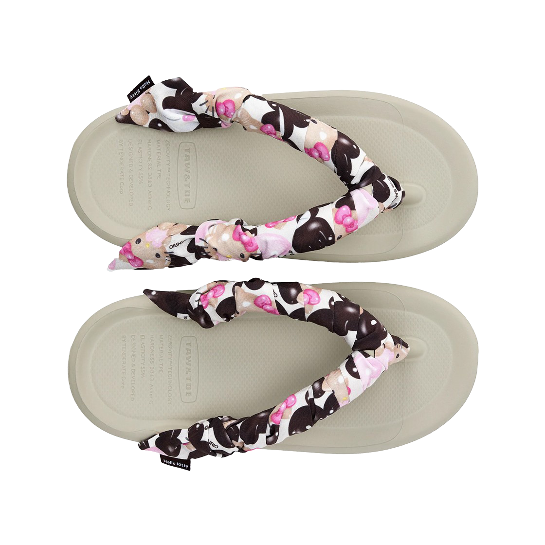(W) Taw&Toe x Sanrio Flip Flop Zerovity OG Tan Hello Kitty Scarf Set Natural Taupe