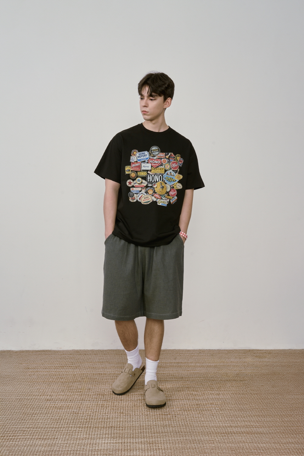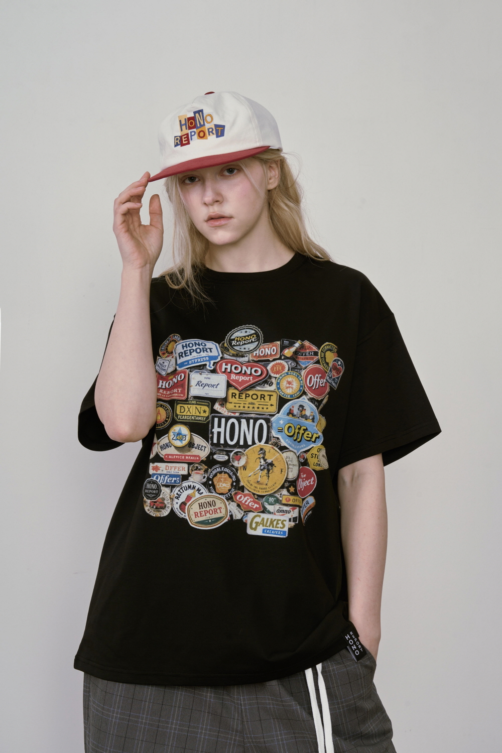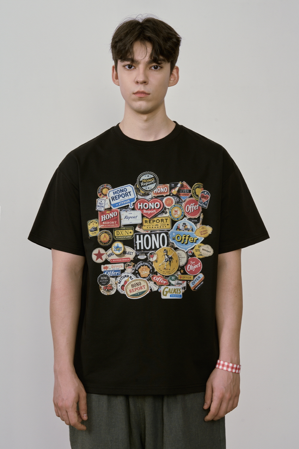 호노 리포트 스티커 티셔츠 블랙