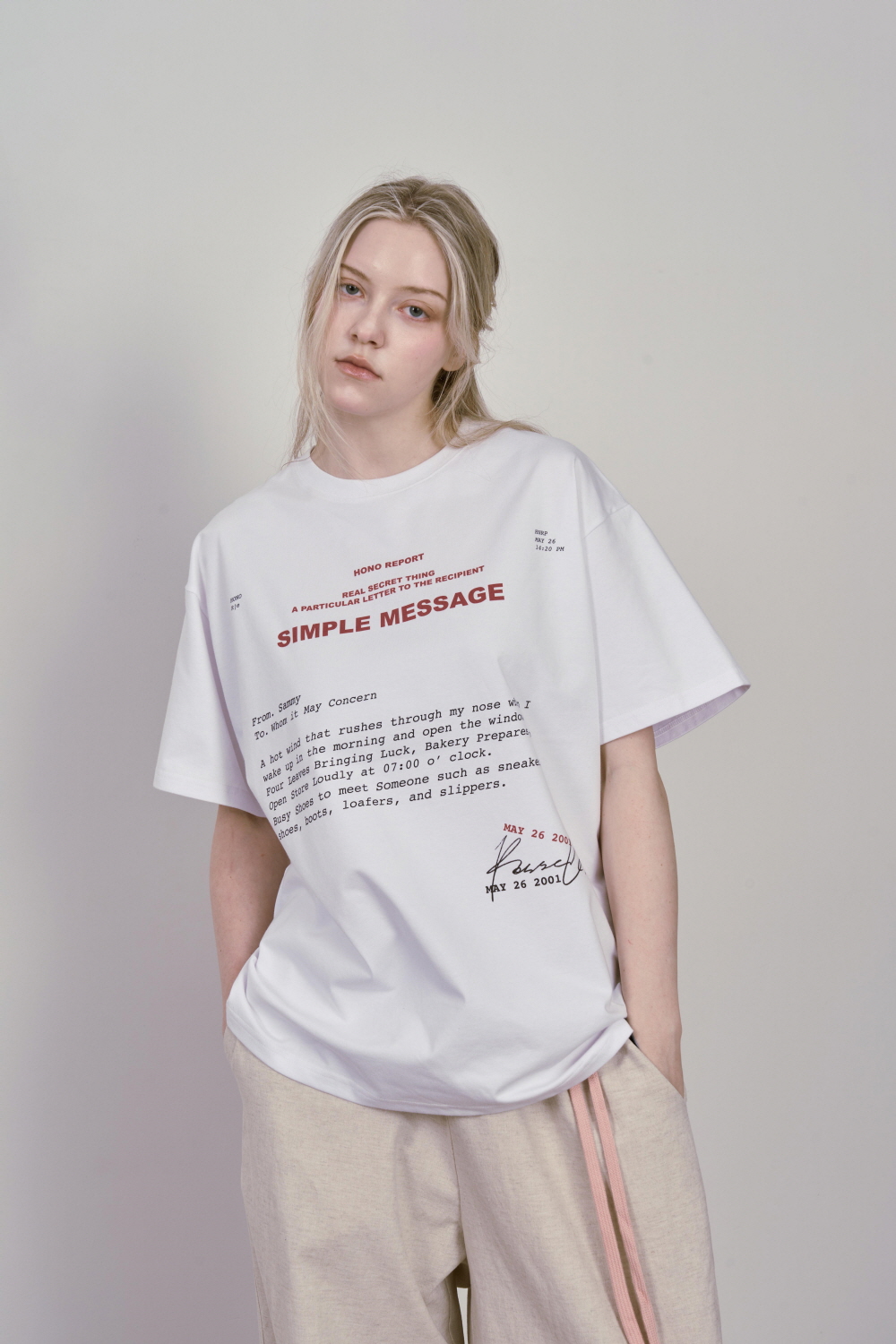 호노 리포트 레터 티셔츠 화이트