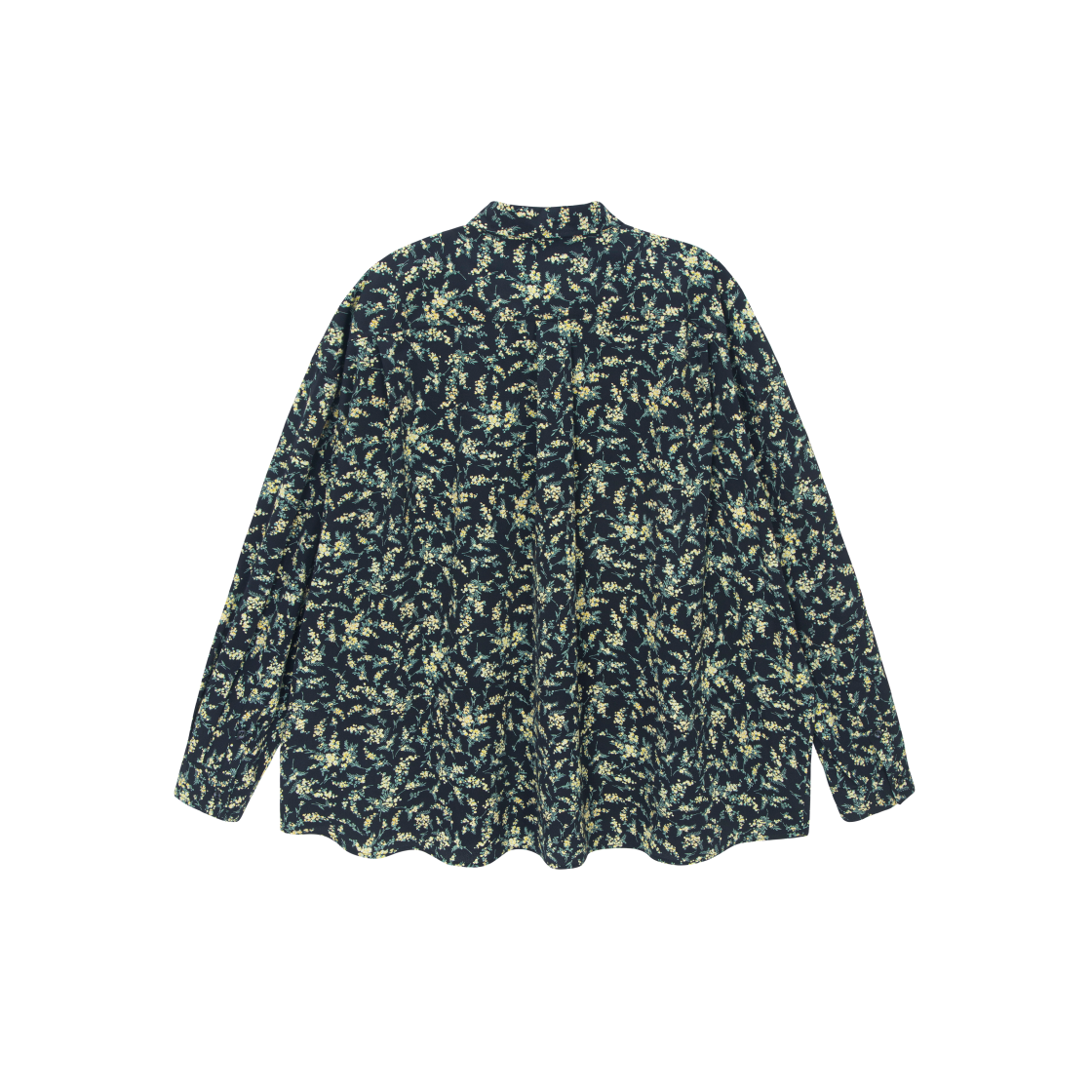 [Product Info] - 뒷판 4개의 턱 디테일 - 노란 꽃이 프린팅된 얇은 원단 [Material] - 폴리 100% [Size Info] - 총장 78 / 어깨 63 / 가슴 77 / 소매 57 cm [Model] - 남자 182 cm 70 kg - 여자 170 cm 45 kg