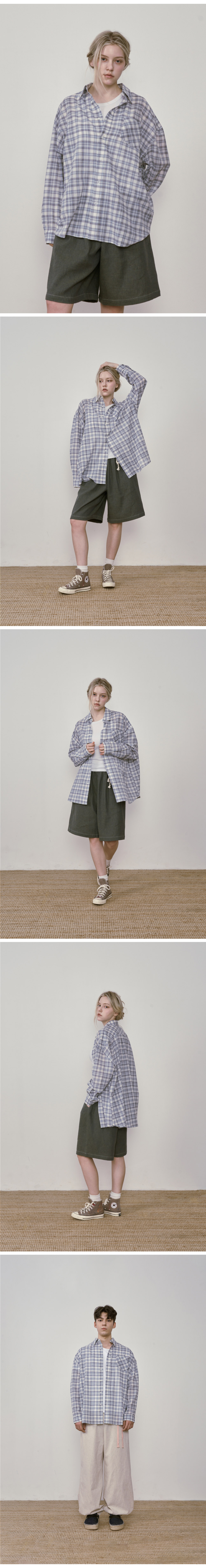 [Product Info] - 뒷판 4개의 턱 디테일 - 매우 얇은 체크 원단 [Material] - 코튼 98% / 스판 2% [Size Info] - 총장 78 / 어깨 63 / 가슴 77 / 소매 57 cm [Model] - 남자 182 cm 70 kg - 여자 170 cm 45 kg
