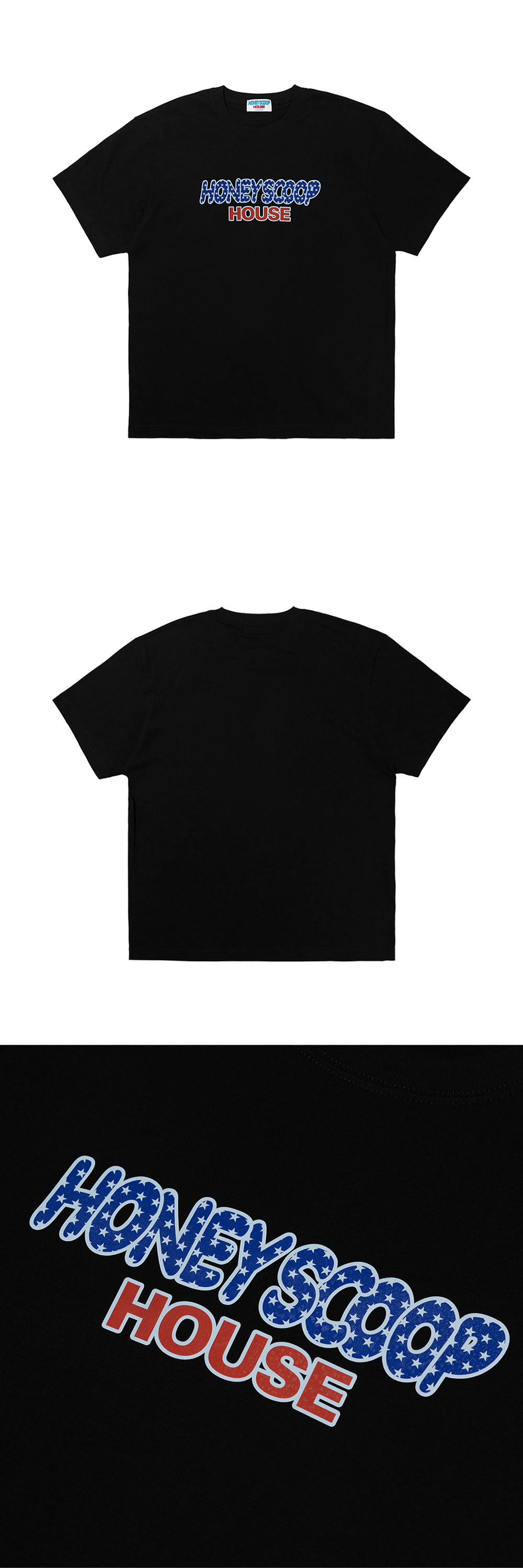 HONEY SCOOP HOUSE FLAG LOGO TEE BLACK 100% COTTON SHORT SLEEVE GRAPHIC TEE