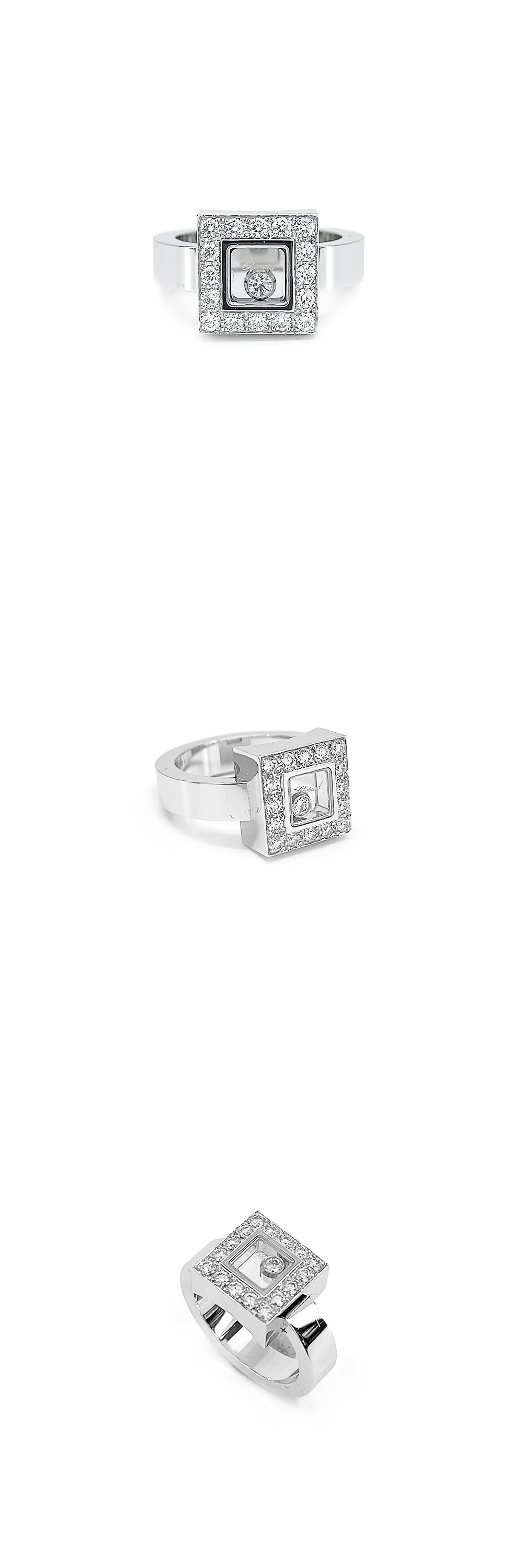 쇼파드 스퀘어 해피 링 48호 18K 화이트골드 다이아몬드