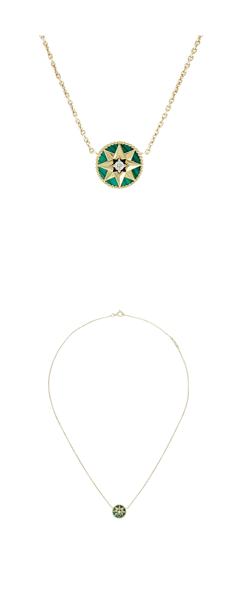 Dior Rose des Vents Necklace Mini Malachite 18K Yellow Gold Diamond