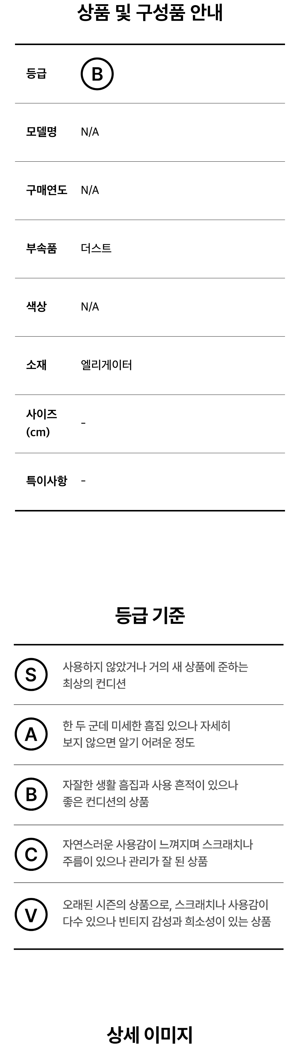 모든 상품(가죽, 의류, 잡화, 슈즈 등)은 사용자의 사용방법과 환경에 따라 변형, 변색이 될 수 있으니 반드시 취급 라벨에 표시된 관리 안내를 따르시길 권장 드립니다. 이는 정도의 차이가 있으며 과도한 체열과 땀, 습기, 빛, 마찰은 제품의 손상 및 변형을 일으킬 수 있으므로 주의하시길 바랍니다.