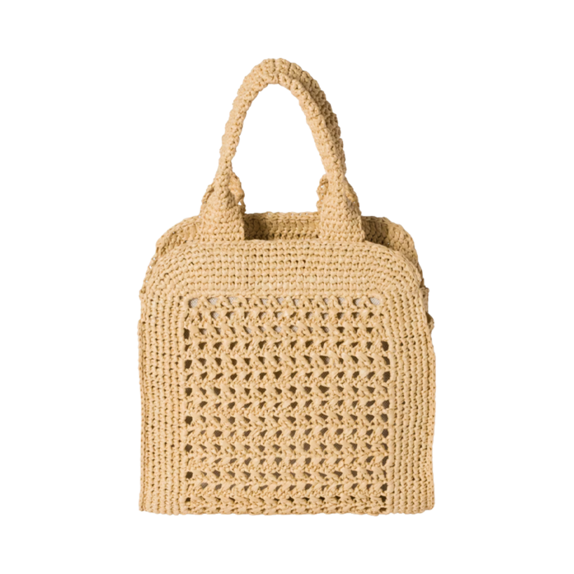 Miu Miu Raffia-Effect Woven Tote Bag Beige Cognac